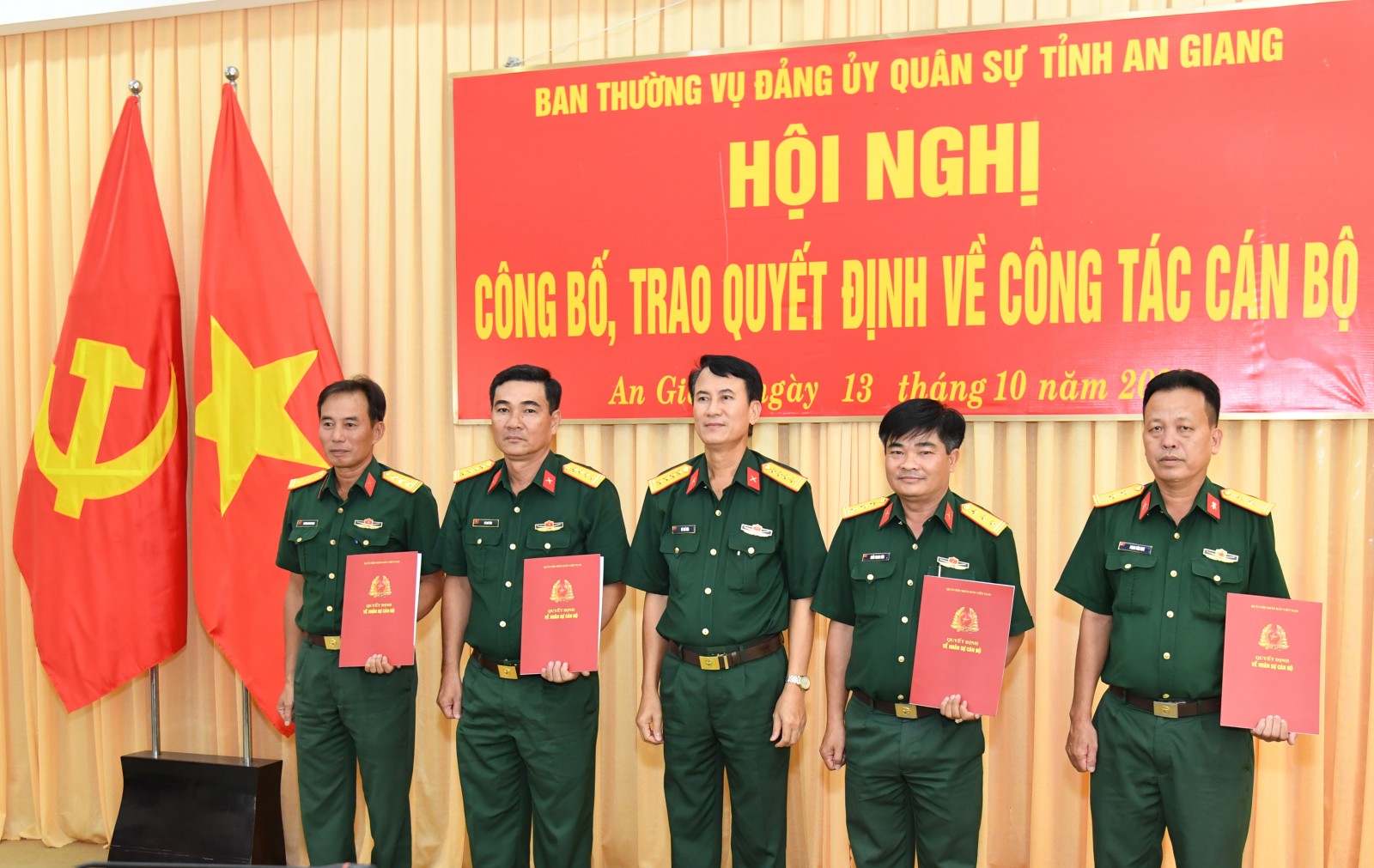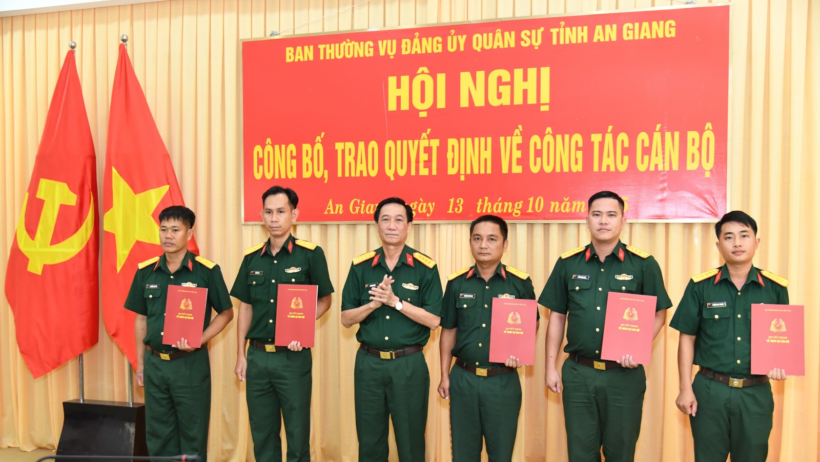 Bộ Chỉ huy Quân sự tỉnh An Giang trao quyết định về công tác cán bộ
