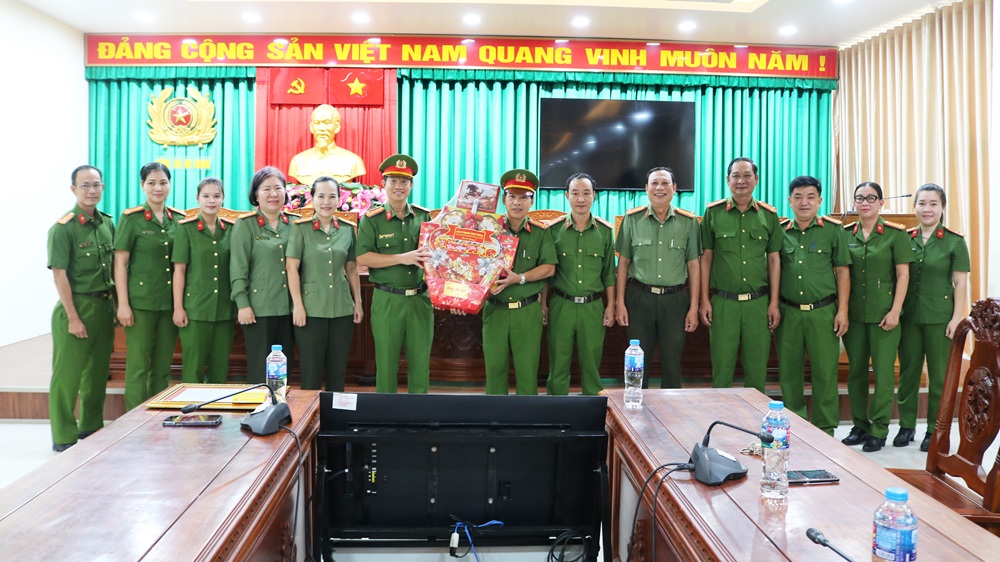 Đại tá Nguyễn Nhật Trường, Phó Giám đốc Công an tỉnh An Giang cùng đoàn công tác trao quà tết cho Công an phường Long Xuyên.
