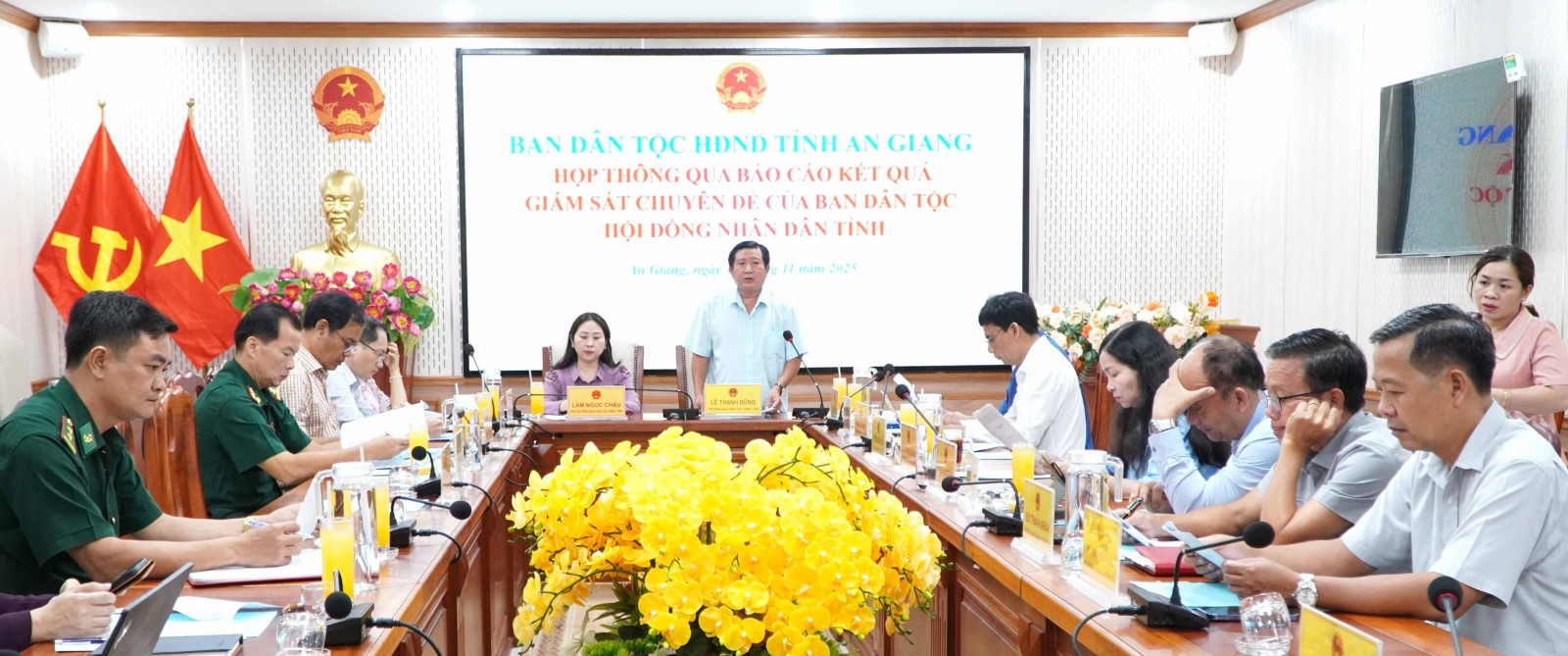 Chiều 10/11, Ban Dân tộc HĐND tỉnh An Giang họp thông qua báo cáo kết quả giám chuyên đề “Kết quả thực hiện nhiệm vụ của Ban Chỉ huy Bộ đội Biên phòng tỉnh trong việc chủ trì, phối hợp Ban Dân tộc (nay là Sở Dân tộc và Tôn giáo) và các sở, ban, ngành, địa phương có liên quan tham mưu cho UBND tỉnh thực hiện các nhiệm vụ, giải pháp về xây dựng thế trận quốc phòng toàn dân ở khu vực biên giới, vùng đồng bào dân tộc thiểu số” trên địa bàn tỉnh.