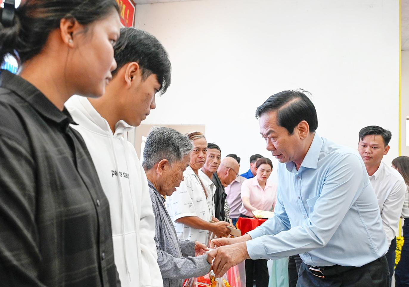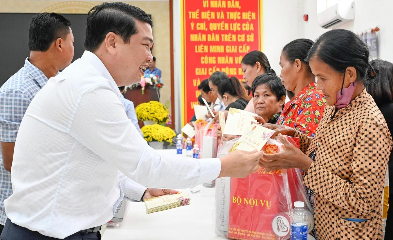Phó Chủ tịch UBND tỉnh An Giang Lê Trung Hồ tặng quà gia đình có hoàn cảnh khó khăn.