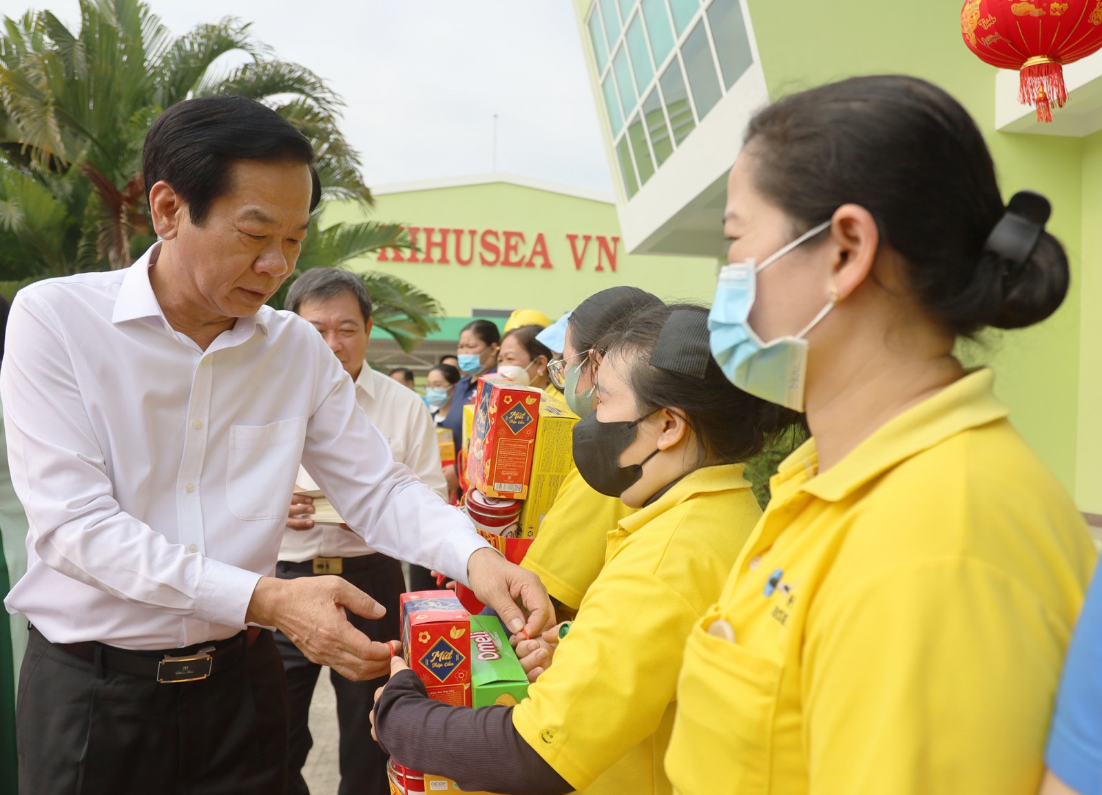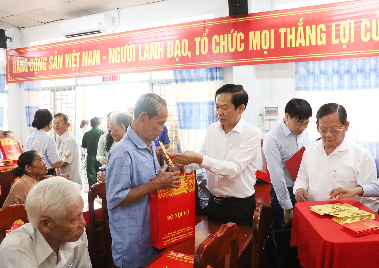 Bộ trưởng Bộ Nội vụ Đỗ Thanh Bình tặng quà công nhân, lao động có hoàn cảnh khó khăn.
