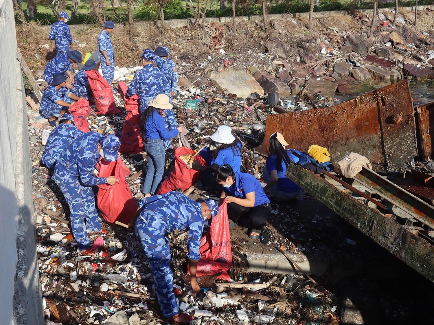 Tuổi trẻ Hải đội 401 phối hợp Đoàn đặc khu Phú Quốc ra quân ngày thứ bảy tình nguyện tổng dọn vệ sinh môi trường biển.