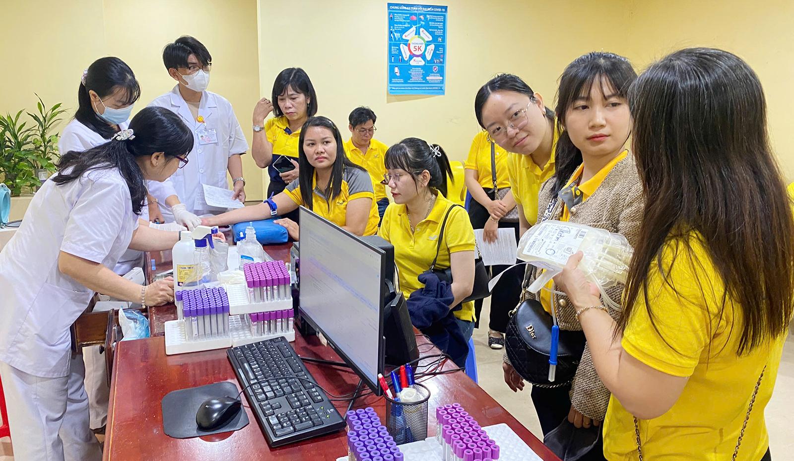 Cán bộ, nhân viên và người lao động Bưu điện tỉnh An Giang tham gia hiến máu.