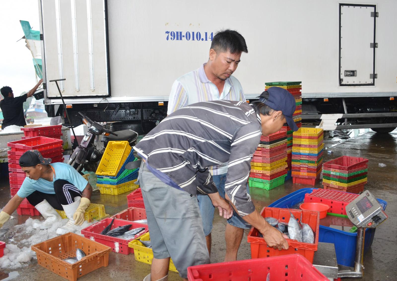 Bốc dỡ thủy sản tại cảng Tắc Cậu, tỉnh An Giang.