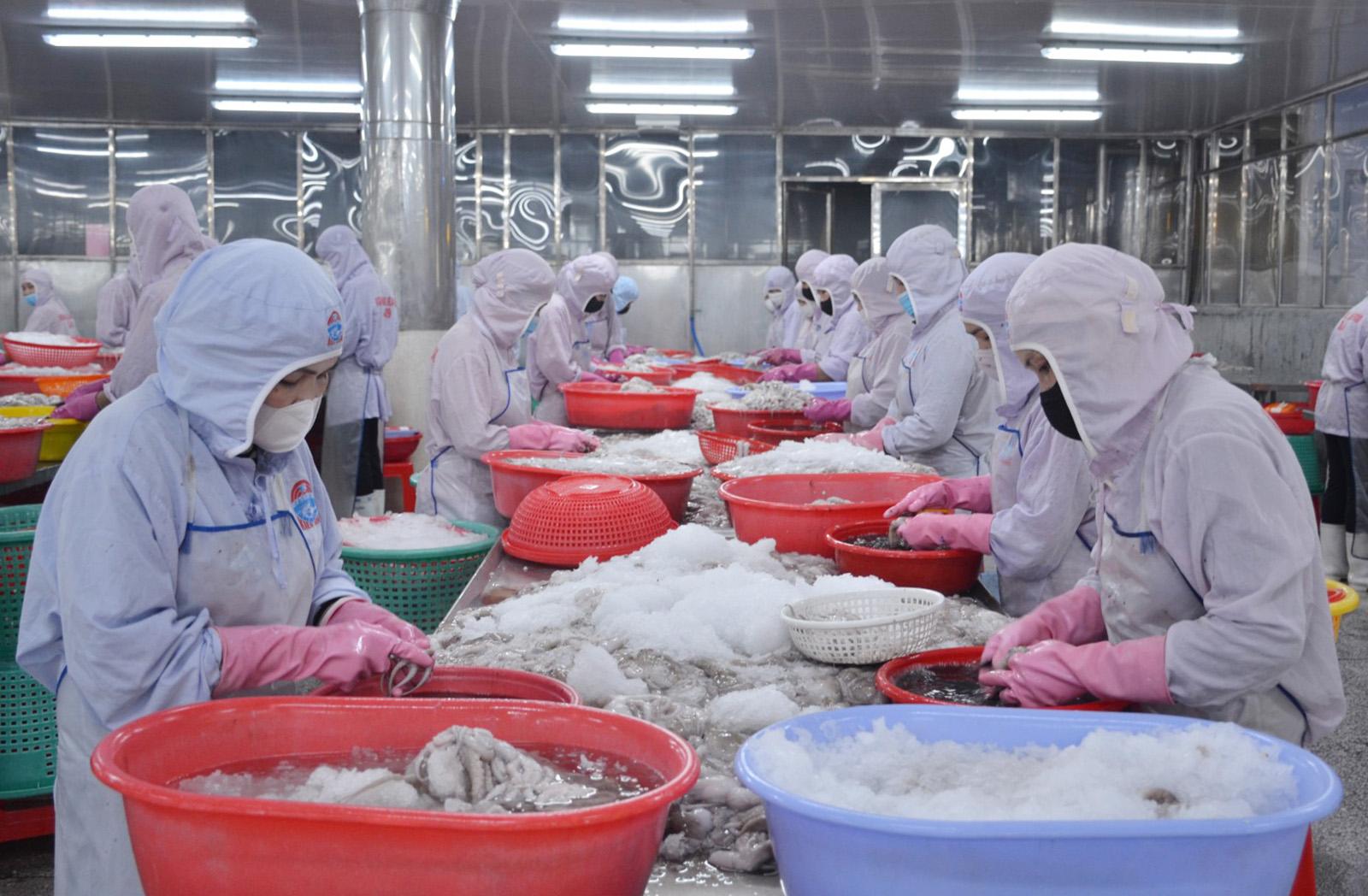 Chế biến bạch tuộc xuất khẩu tại Công ty Thủy sản Kiên Cường Tắc Cậu.