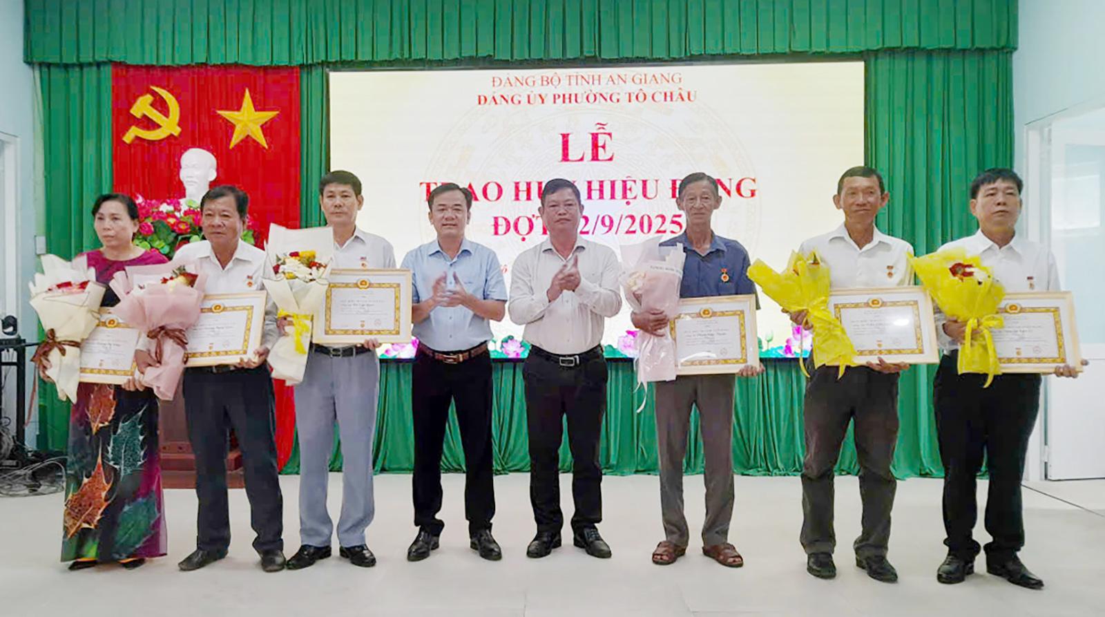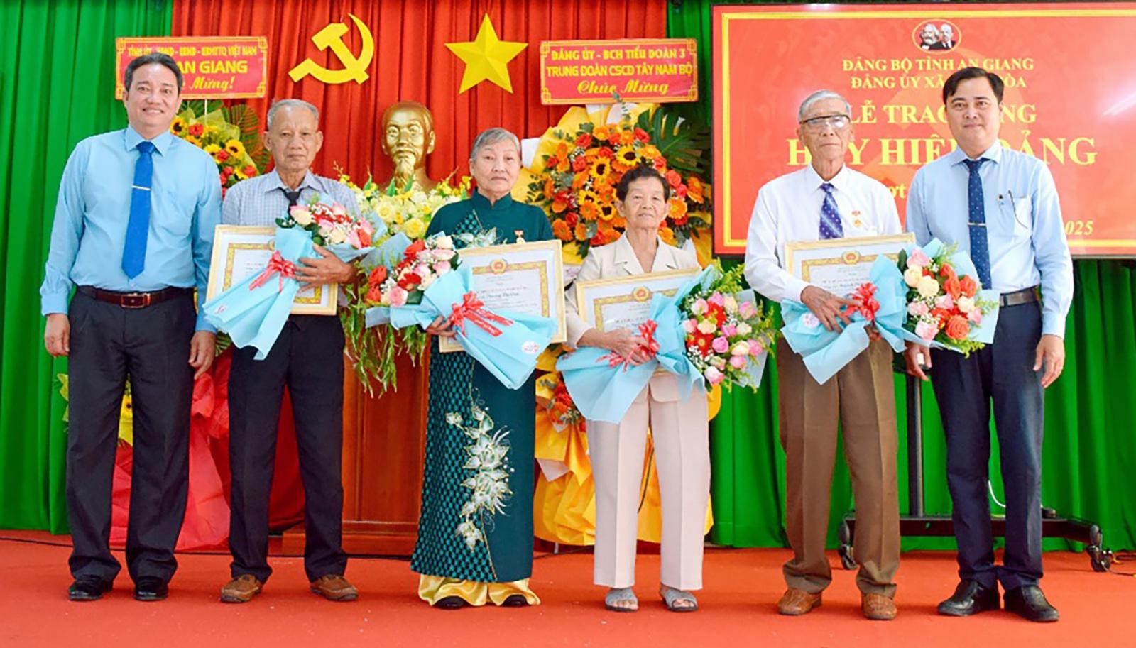 Ngày 28/8, nhiều địa phương trong tỉnh An Giang tổ chức trao tặng Huy hiệu Đảng cho các đảng viên cao niên tuổi Đảng, nhân kỷ niệm 80 năm Quốc khánh nước Cộng hòa Xã hội Chủ nghĩa Việt Nam (2/9/1945 - 2/9/2025).