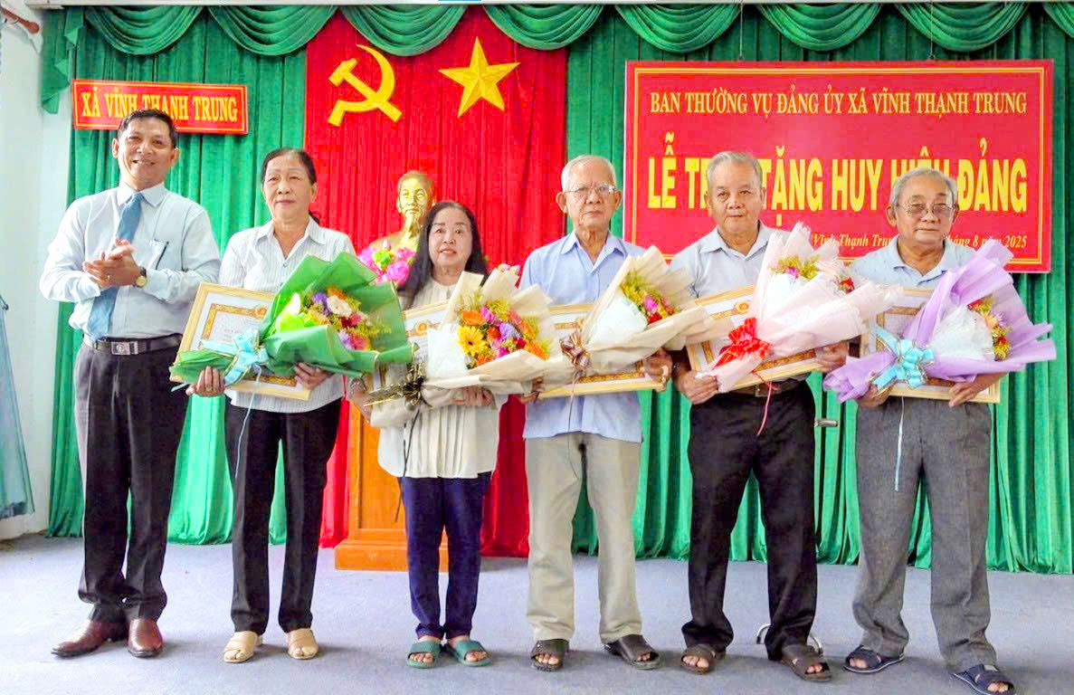 Ban Thường vụ Đảng ủy xã Vĩnh Thạnh Trung trao Huy hiệu Đảng cho 1 đảng viên 55 năm tuổi Đảng, 2 đảng viên 45 năm tuổi Đảng, 5 đảng viên 40 năm tuổi Đảng và 3 đảng viên 30 năm tuổi Đảng.