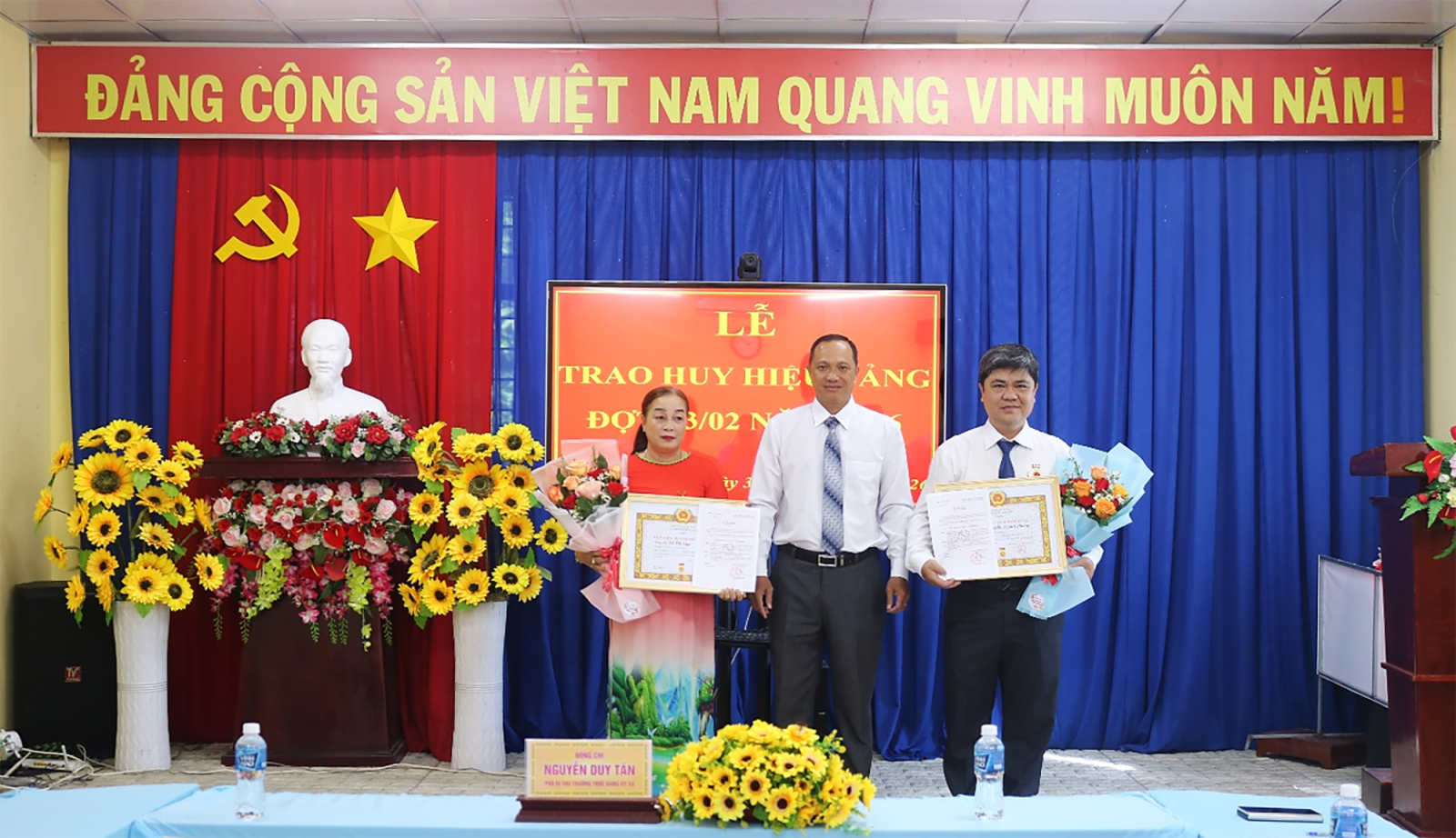 Dịp này, Ban Thường vụ Đảng ủy xã Cần Đăng trao Huy hiệu 30 năm tuổi Đảng cho 2 đảng viên.
