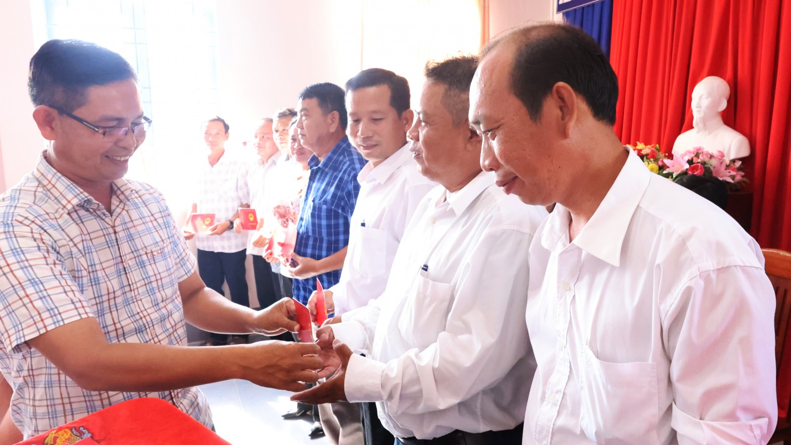Phó Giám đốc Sở Dân tộc và Tôn giáo tỉnh An Giang Danh Tha trao chứng chỉ hoàn thành bồi dưỡng kiến thức dân tộc đối tượng 4 cho các đại biểu tại xã An Cư.