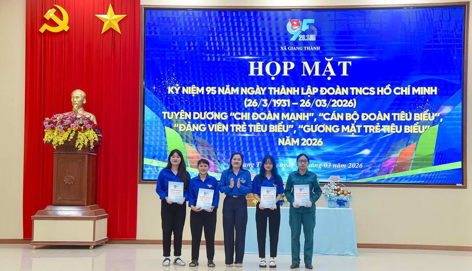 Dịp này, Đoàn Thanh niên Cộng sản Hồ Chí Minh xã Giang Thành tuyên dương 4 gương mặt trẻ tiêu biểu; 5 đảng viên trẻ tiêu biểu; 10 cán bộ đoàn tiêu biểu và 5 chi đoàn mạnh năm 2026.