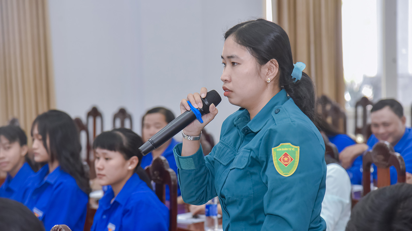 Bí thư Chi đoàn Quân sự xã Giang Thành Nguyễn Thị Trúc Nướng phát biểu ý kiến tại hội nghị.