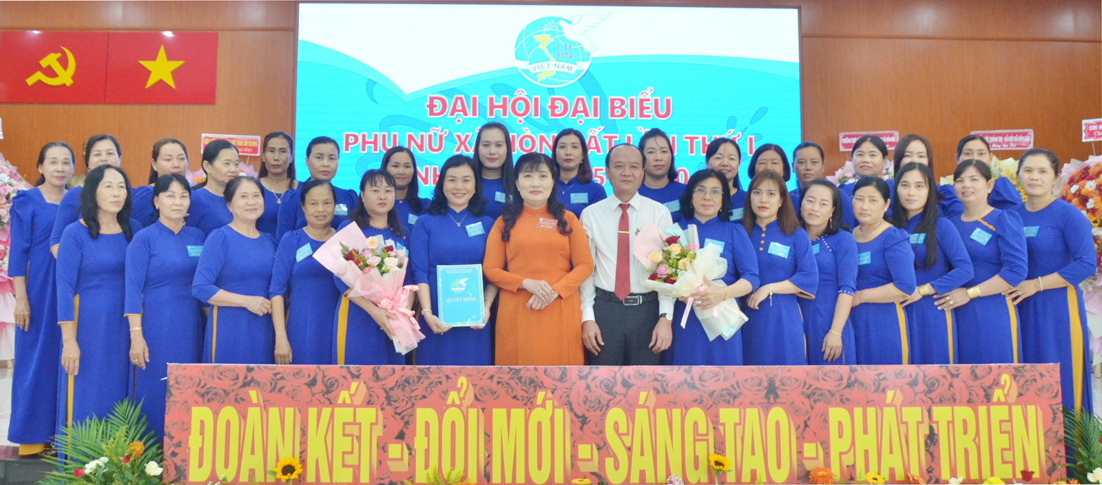 Lãnh đạo Hội Liên hiệp Phụ nữ tỉnh An Giang, Đảng ủy xã Hòn Đất trao quyết định, tặng hoa chúc mừng Ban Chấp hành Hội Liên hiệp Phụ nữ xã Hòn Đất, nhiệm kỳ 2025 - 2030.