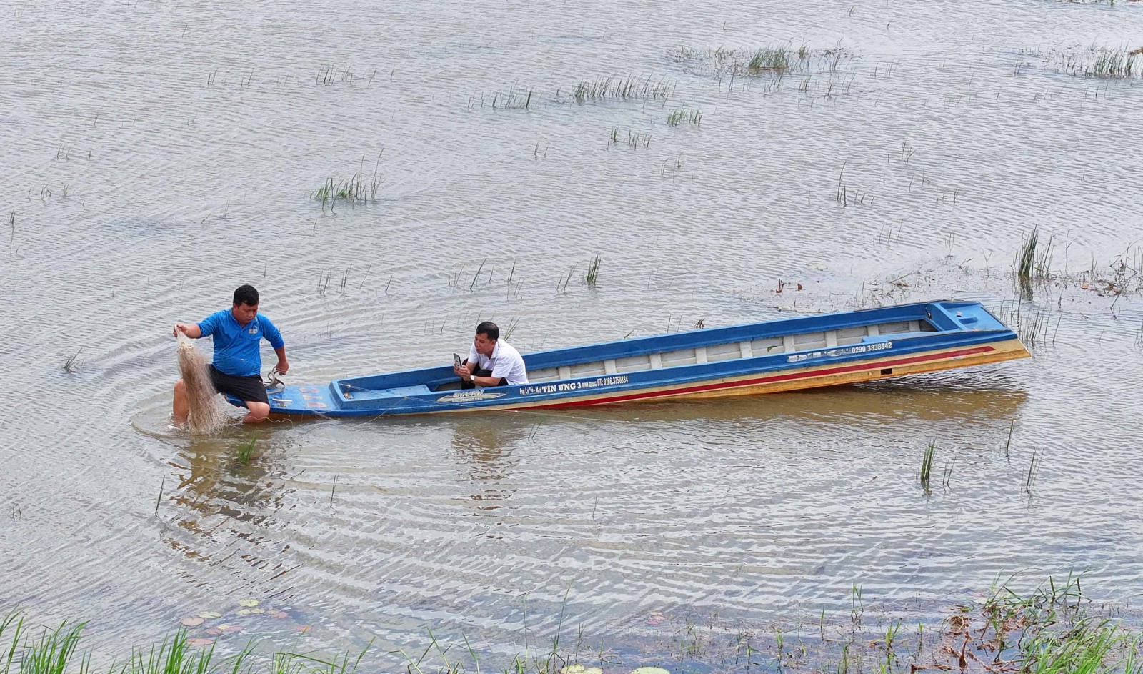 Nước năm nay lớn hơn so với các năm, thiên nhiên hào phóng ban tặng cho ngư dân miền đồng bằng châu thổ Cửu Long lượng lớn thủy sản, nhờ đó, người dân có thu nhập lúc nông nhàn. Mùa nước nổi, trên những cánh đồng từ biên giới cho đến vùng trong hẻo lánh đều bắt gặp người dân đánh bắt thủy sản trên đồng nước. Mỗi nơi, người dân khai thác mỗi kiểu, nhưng điều đáng mừng là cá, tôm, cua… phong phú. Trung bình mỗi ngày, người dân thu nhập từ 400.000 - 500.000 đồng từ đánh bắt thủy sản trên đồng lũ, trang trải cuộc sống gia đình và nuôi con ăn học.