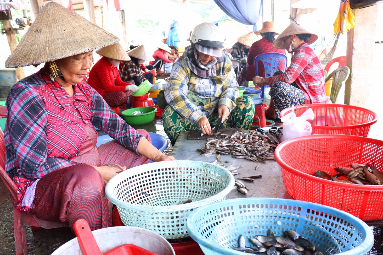 Gió bấc về, còn hơn tháng nữa là hết năm, người dân chộn rộn cắt đầu cá làm khô, mắm thuê cho chủ vựa. Nhờ vậy, họ có việc làm trong suốt mùa nước nổi, thu nhập từ 200.000 - 250.000 đồng/ngày.