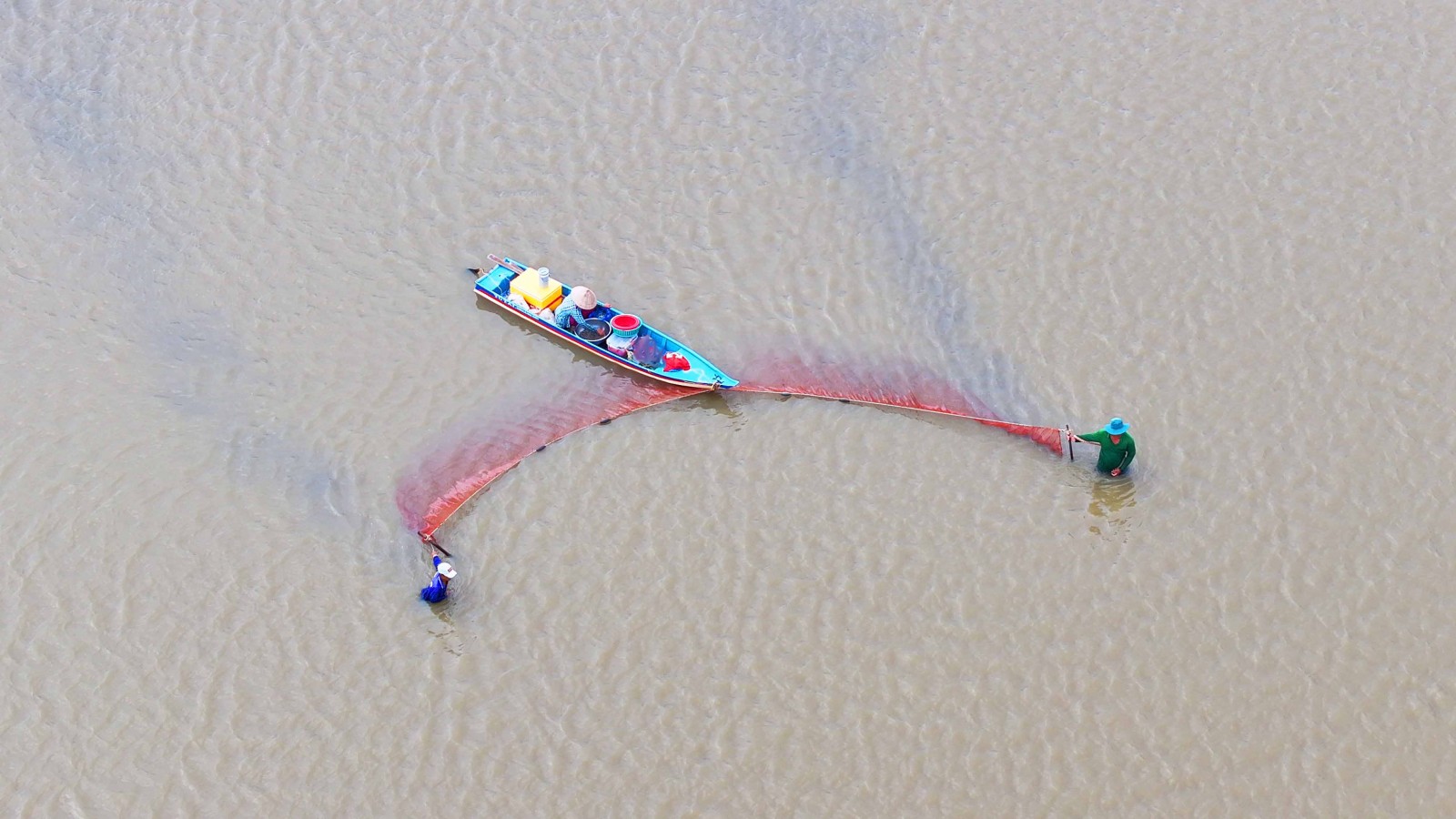 Nhìn từ trên cao, cánh đồng nước bao la như bức tranh tuyệt đẹp.