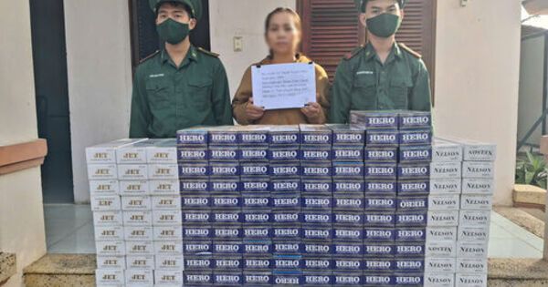 Lực lượng biên phòng bắt giữ một đối tượng vận chuyển trái phép 1.400 gói thuốc lá ngoại nhập lậu ngày 28/11/2025. Ảnh: TUẤN KIỆT