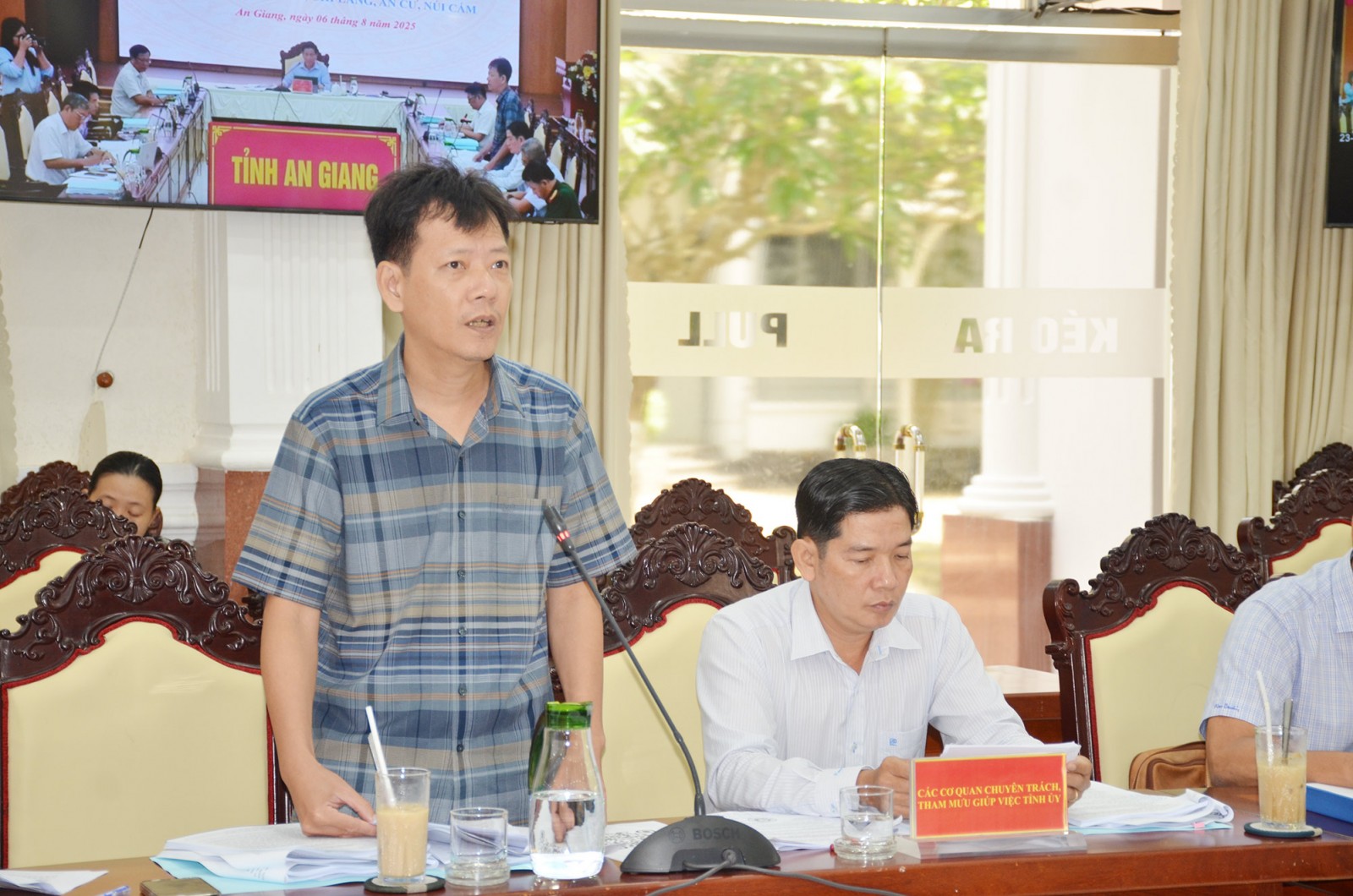 Phó Giám đốc Sở Nông nghiệp và Môi trường tỉnh An Giang Hồ Thanh Bình góp ý báo cáo chính trị các xã, phường.