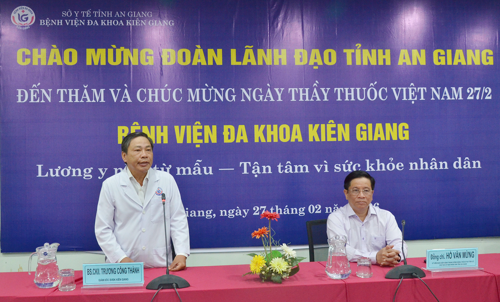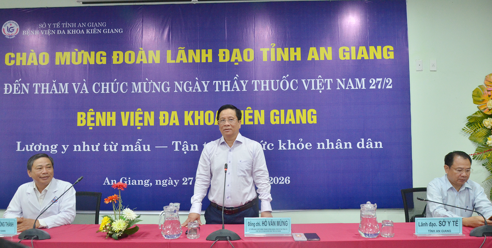 Tại buổi đến thăm, Chủ tịch UBND tỉnh An Giang Hồ Văn Mừng thay mặt lãnh đạo tỉnh chúc ban giám đốc, đội ngũ y, bác sĩ, người lao động của Bệnh viện Đa khoa Kiên Giang nói riêng, ngành y tế tỉnh An Giang nói chung được mạnh khỏe, tiếp tục có nhiều thành công trong công việc và cuộc sống.
