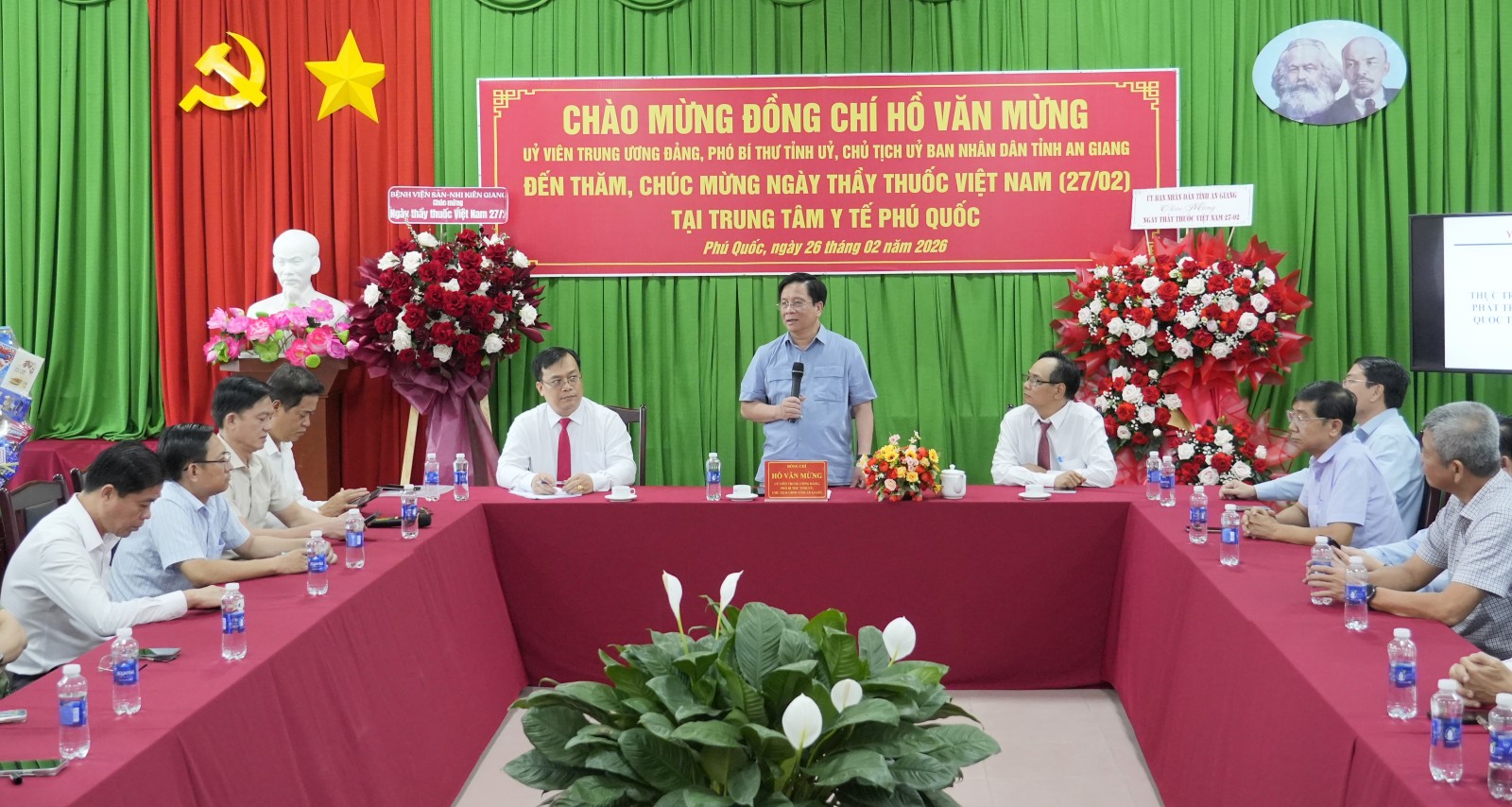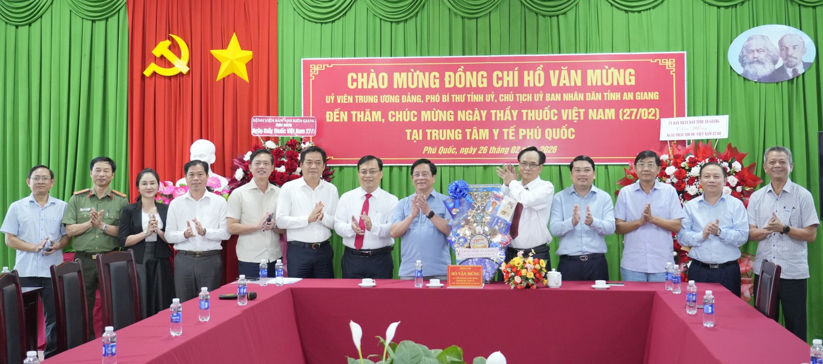 Chiều 26/2, đoàn công tác của tỉnh do Ủy viên Ban Chấp hành Trung ương Đảng, Phó Bí thư Tỉnh ủy, Chủ tịch UBND tỉnh An Giang Hồ Văn Mừng làm trưởng đoàn đến thăm, chúc mừng Trung tâm Y tế Phú Quốc, nhân kỷ niệm 71 năm Ngày Thầy thuốc Việt Nam (27/2/1955 - 27/2/2026).