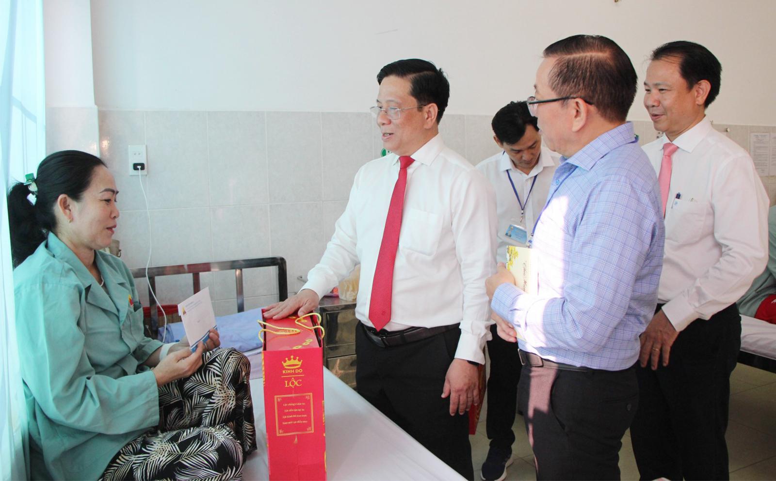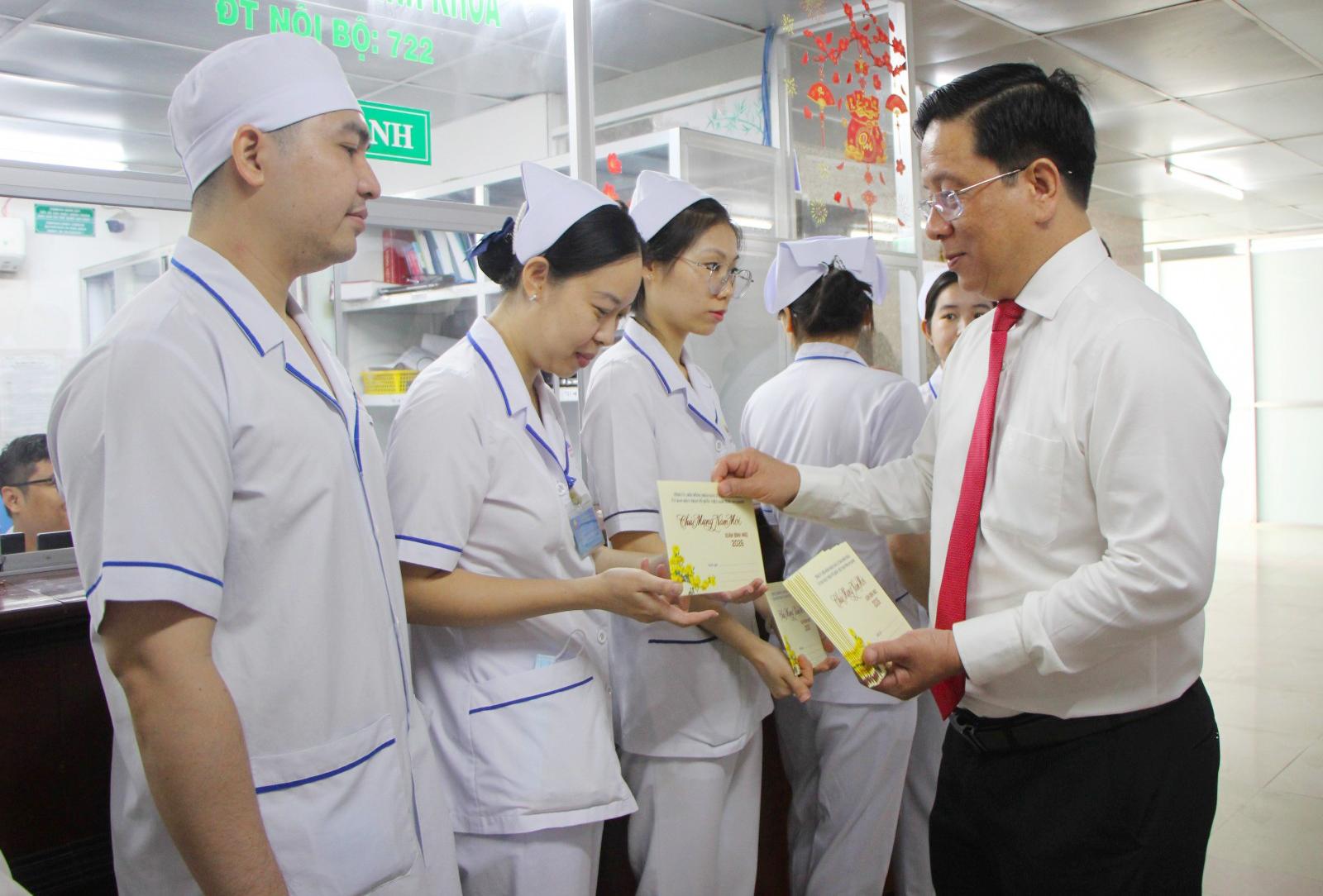 Ủy viên Ban Chấp hành Trung ương Đảng, Phó Bí thư Tỉnh ủy, Chủ tịch UBND tỉnh An Giang Hồ Văn Mừng chúc tết, tặng quà nhân viên y tế Bệnh viện Bình An.