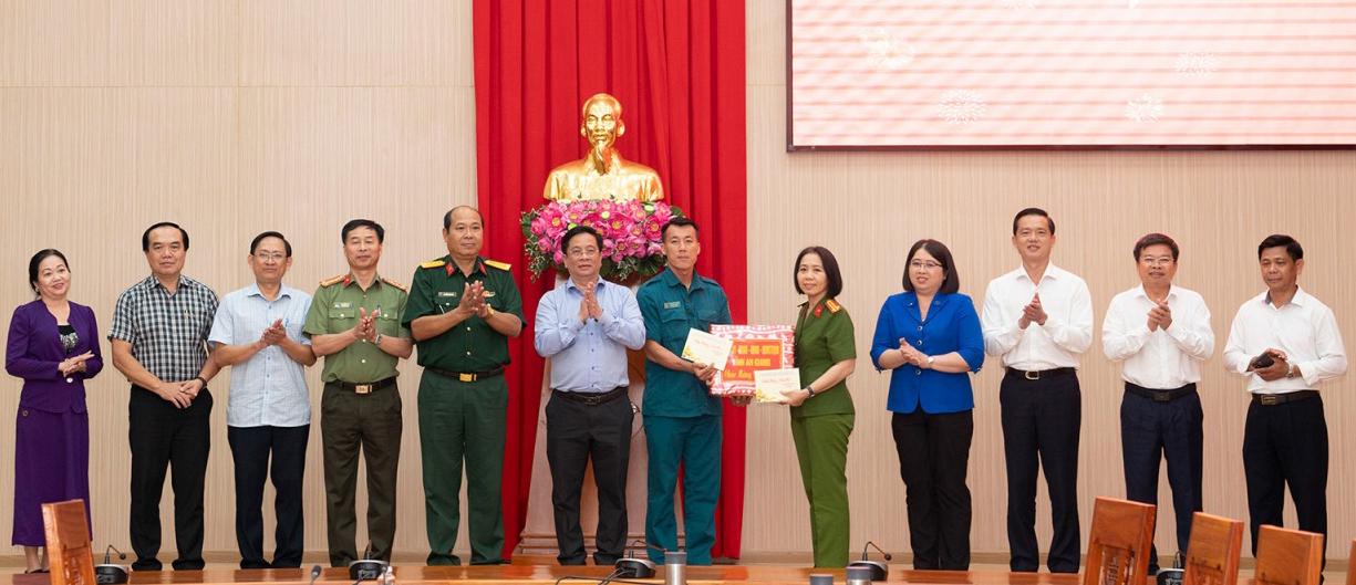 Ủy viên Ban Chấp hành Trung ương Đảng, Phó Bí thư Tỉnh ủy, Chủ tịch UBND tỉnh An Giang Hồ Văn Mừng tặng quà Công an, Ban Chỉ huy Quân sự đặc khu Phú Quốc.