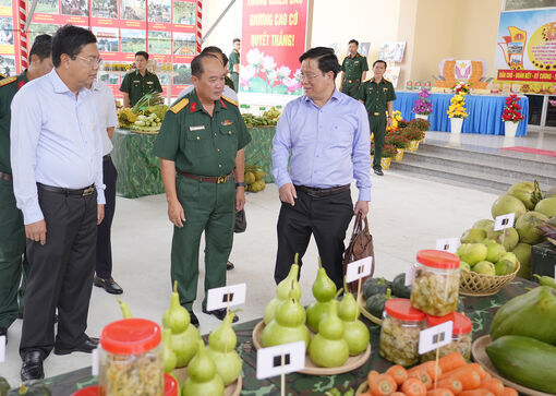 Ủy viên Ban Chấp hành Trung ương Đảng, Bí thư Tỉnh ủy, Bí thư Đảng ủy Quân sự tỉnh An Giang Nguyễn Tiến Hải; Ủy viên dự khuyết Ban Chấp hành Trung ương Đảng, Phó Bí thư Tỉnh ủy, Chủ tịch UBND tỉnh An Giang Hồ Văn Mừng; Đại tá Nguyễn Văn Ngành, Ủy viên Ban Thường vụ Tỉnh ủy, Chỉ huy trưởng Bộ Chỉ huy Quân sự tỉnh An Giang tham quan gian trưng bày tại hội nghị.