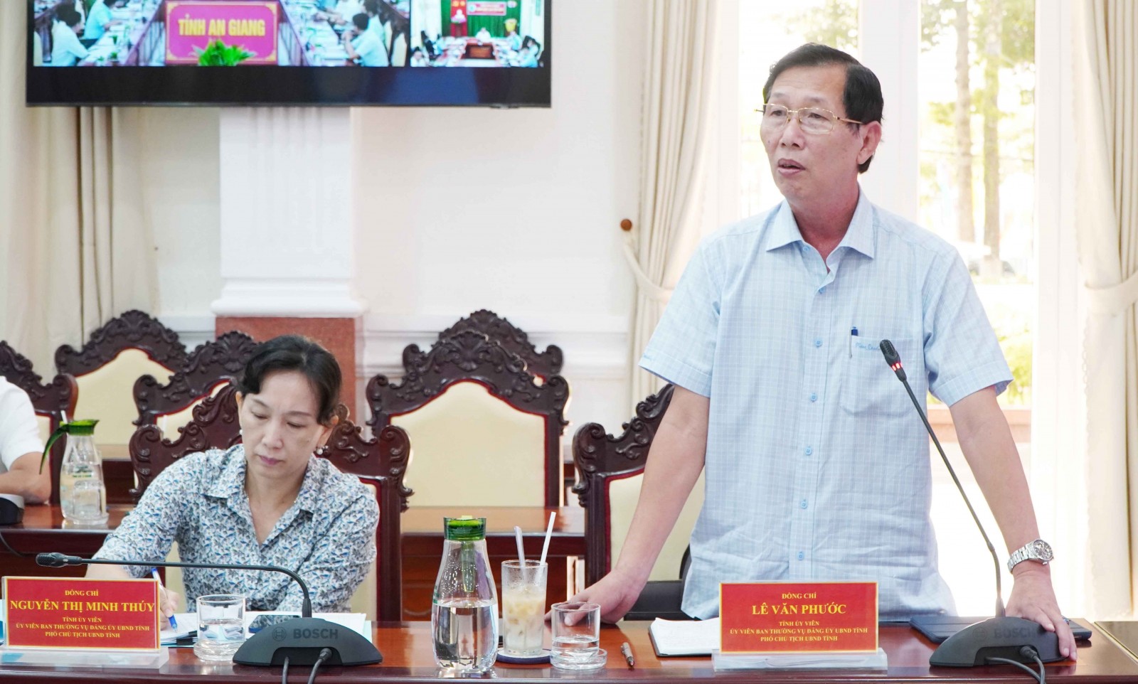 Phó Chủ tịch UBND tỉnh An Giang Lê Văn Phước phát biểu tại buổi làm việc.