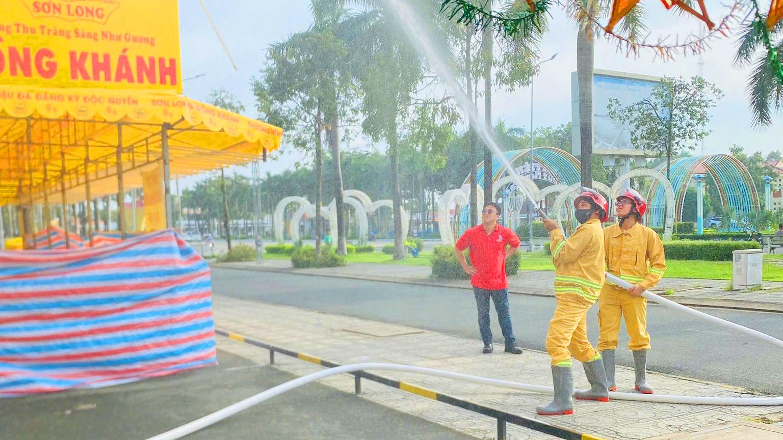 Đồng thời, tham gia thực hành tình huống giả định cháy lớn tại siêu thị, nhanh chóng triển khai phương án dập lửa, phối hợp cứu người và di chuyển tài sản ra khỏi khu vực nguy hiểm. Toàn bộ quá trình diễn ra an toàn, hiệu quả, đúng quy trình nghiệp vụ.