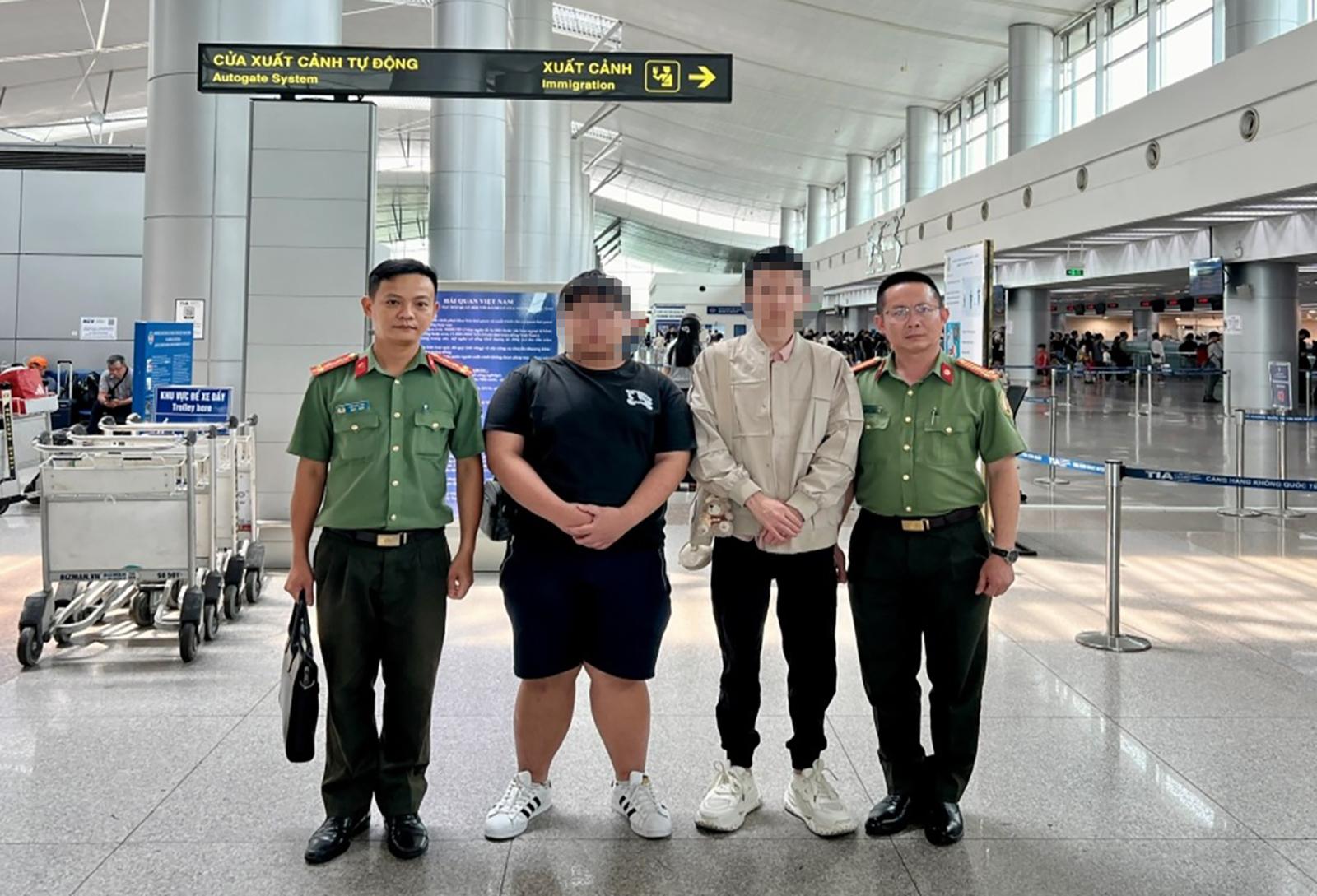 Ngày 28/2, Phòng Quản lý xuất nhập cảnh Công an tỉnh An Giang cho biết đã phối hợp Công an cửa khẩu Cảng hàng không quốc tế Tân Sơn Nhất hoàn tất các thủ tục trục xuất hai công dân Trung Quốc có hành vi nhập cảnh trái phép vào Việt Nam gồm T.B.W (sinh năm 2001) và C.Y.M (sinh năm 2009) qua Cảng hàng không quốc tế Tân Sơn Nhất.
