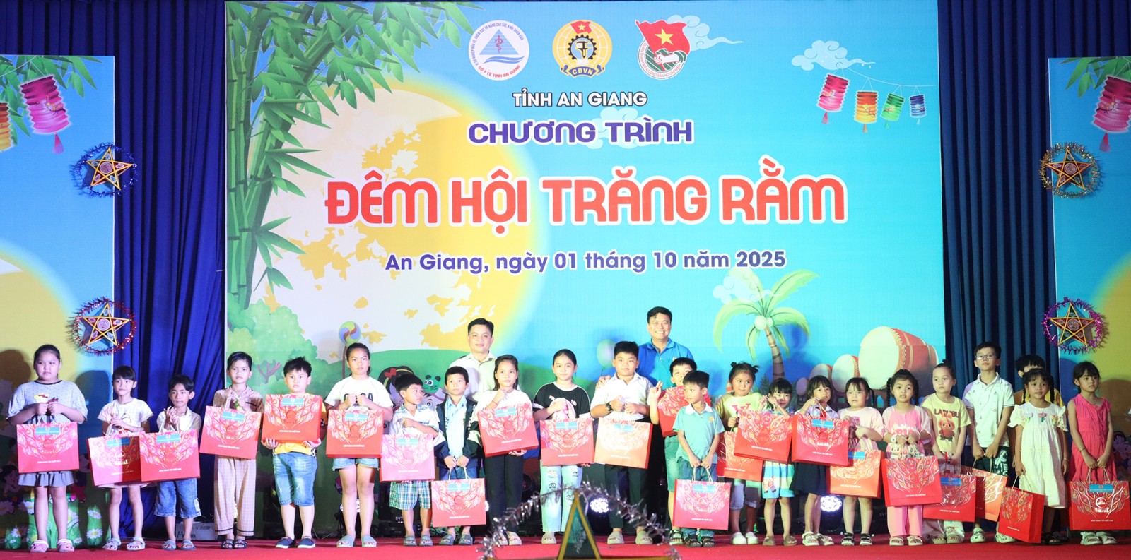 Tối 1/10, Liên đoàn Lao động tỉnh An Giang, Tỉnh đoàn An Giang, Sở Y tế tỉnh An Giang phối hợp tổ chức chương trình “Đêm hội trăng rằm” năm 2025 cho 200 con em đoàn viên, người lao động có hoàn cảnh khó khăn ở phường Rạch Giá.