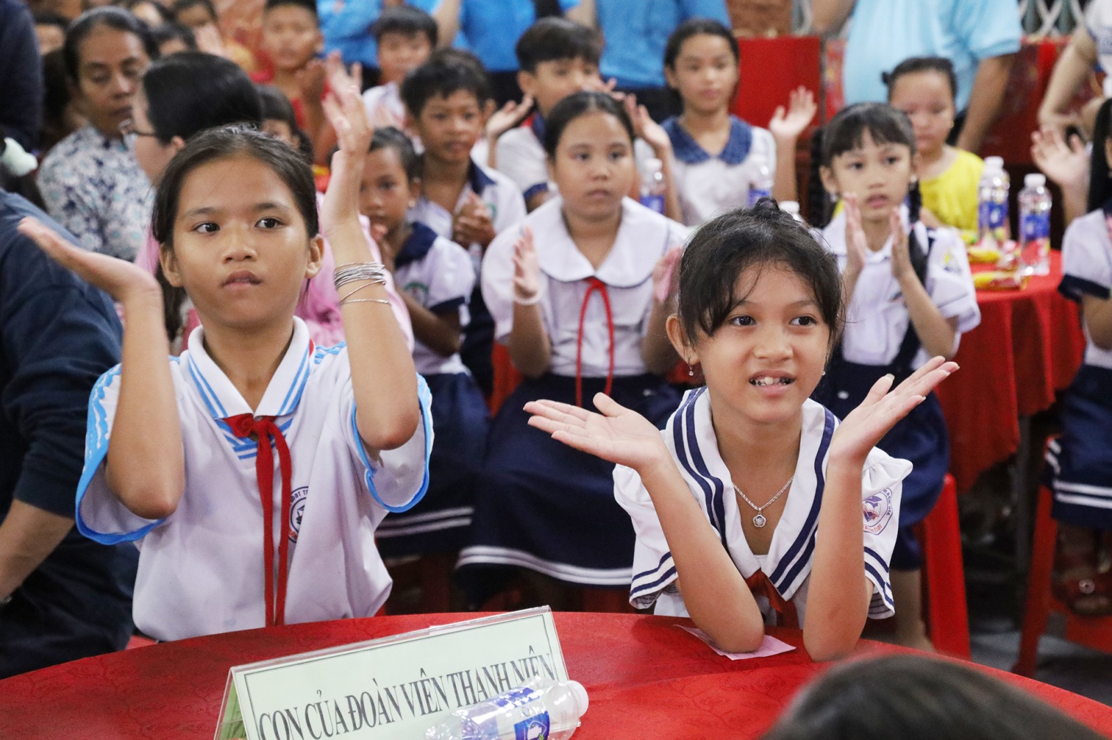 Thiếu nhi con đoàn viên, người lao động phấn khởi tham gia chương trình.