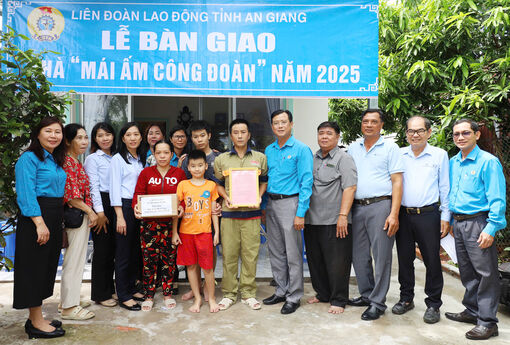 Cùng ngày, Liên đoàn Lao động tỉnh An Giang đã bàn giao nhà “Mái ấm Công đoàn” cho đoàn viên Trần Hoài Nam, hiện sinh hoạt tại Công đoàn cơ sở Công ty Cổ phần Cơ khí Kiên Giang.