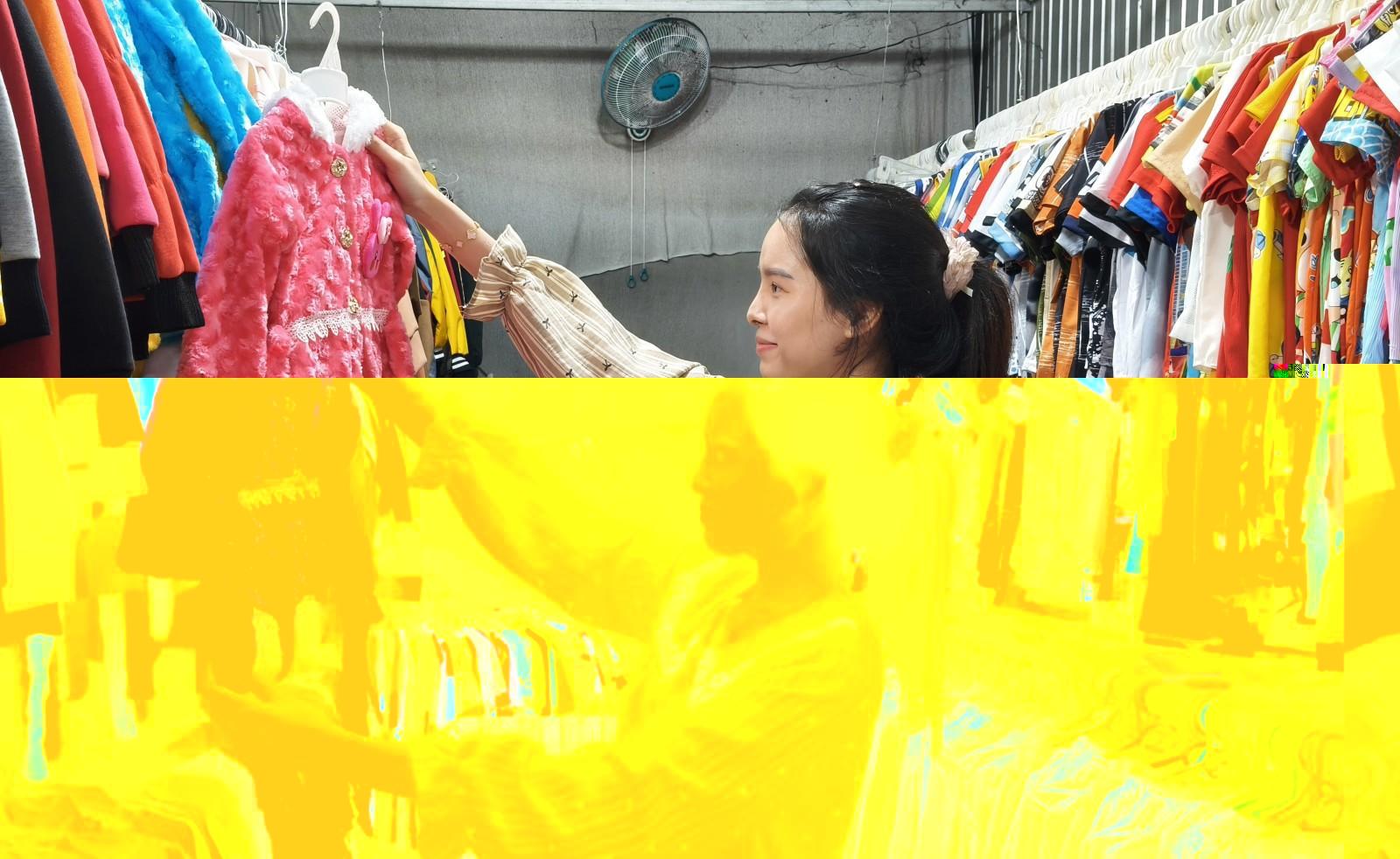 Khách hàng lựa quần áo tại chợ Thứ Ba, xã An Biên. Ảnh: BẢO TRÂN