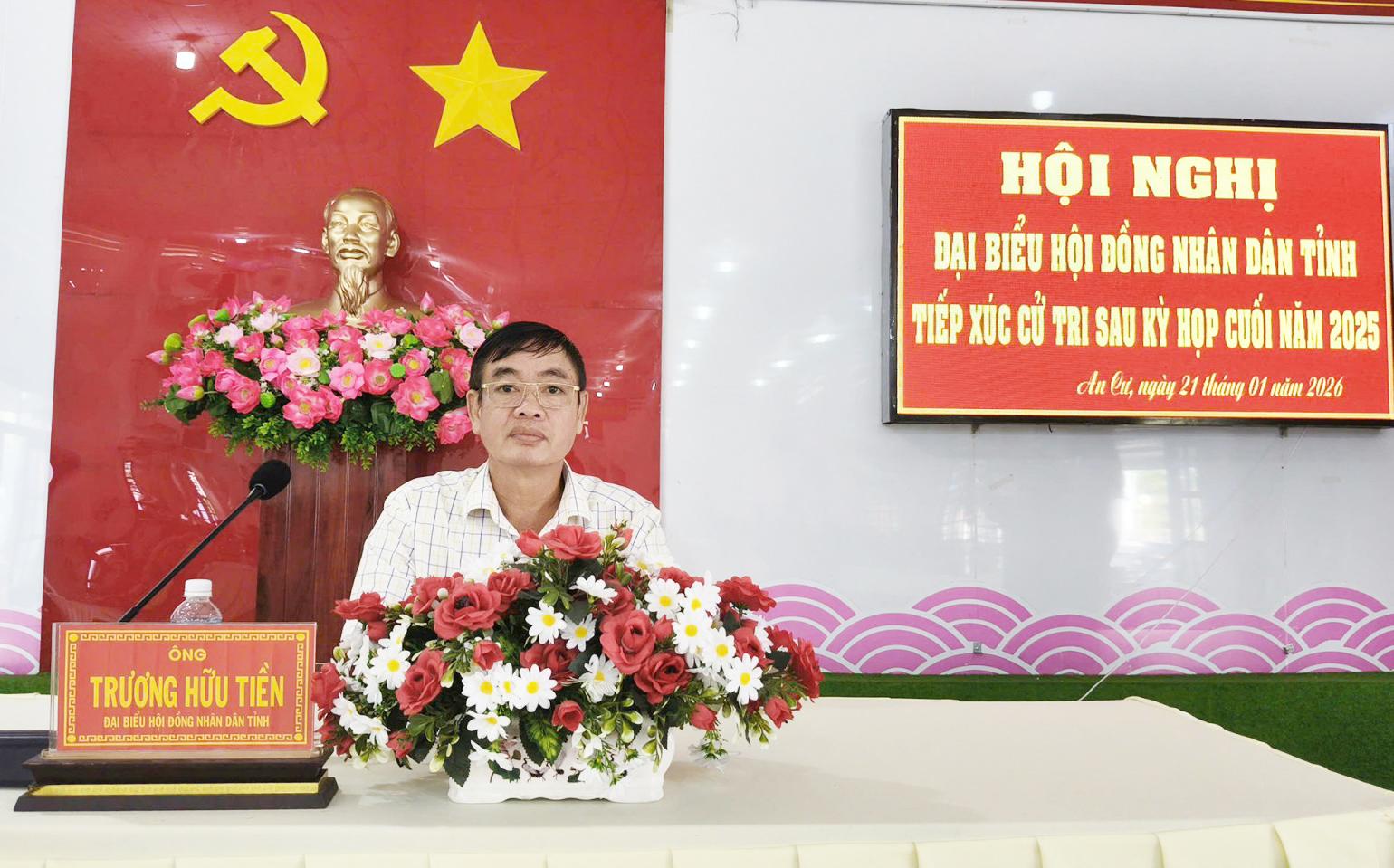 Tại buổi tiếp xúc, đại biểu HĐND tỉnh An Giang báo cáo kết quả phát triển kinh tế - xã hội năm 2025 trên địa bàn tỉnh; thông tin về những định hướng mới trong năm 2026; báo cáo việc trả lời ý kiến, kiến nghị của cử tri đặt ra tại lần tiếp xúc cử tri trước đó...