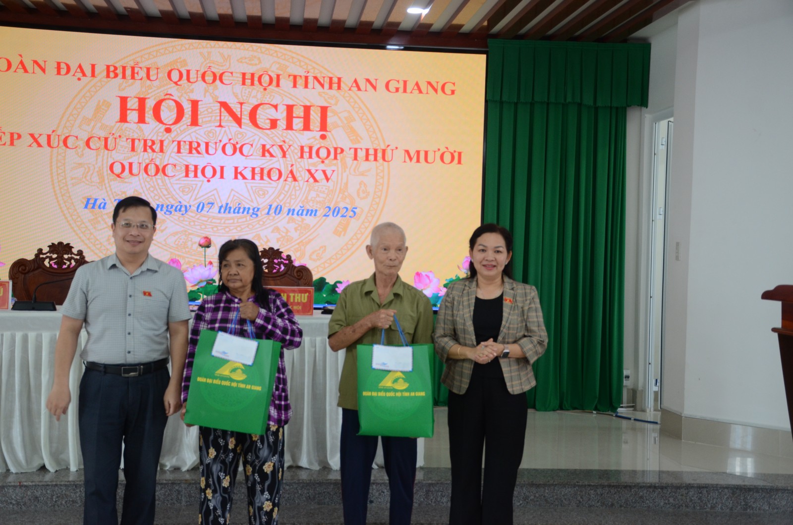 Dịp này, Đoàn Đại biểu Quốc hội đơn vị tỉnh An Giang trao tặng 2 phần quà cho gia đình chính sách, hộ nghèo ở xã Vĩnh Điều.
