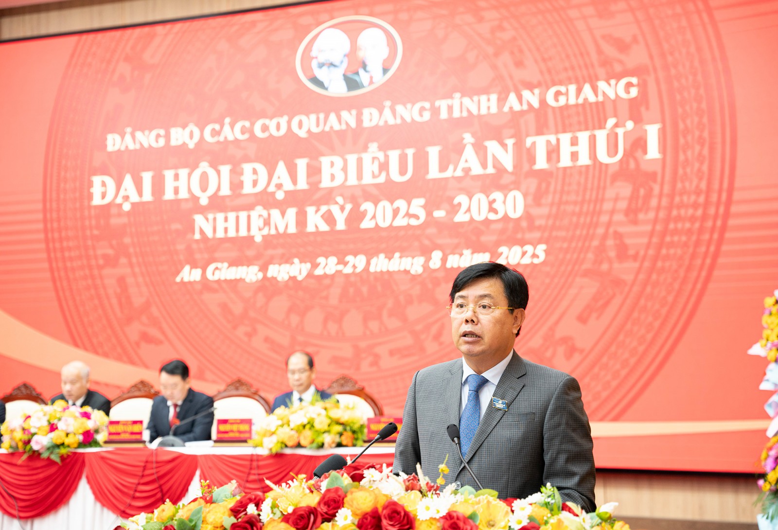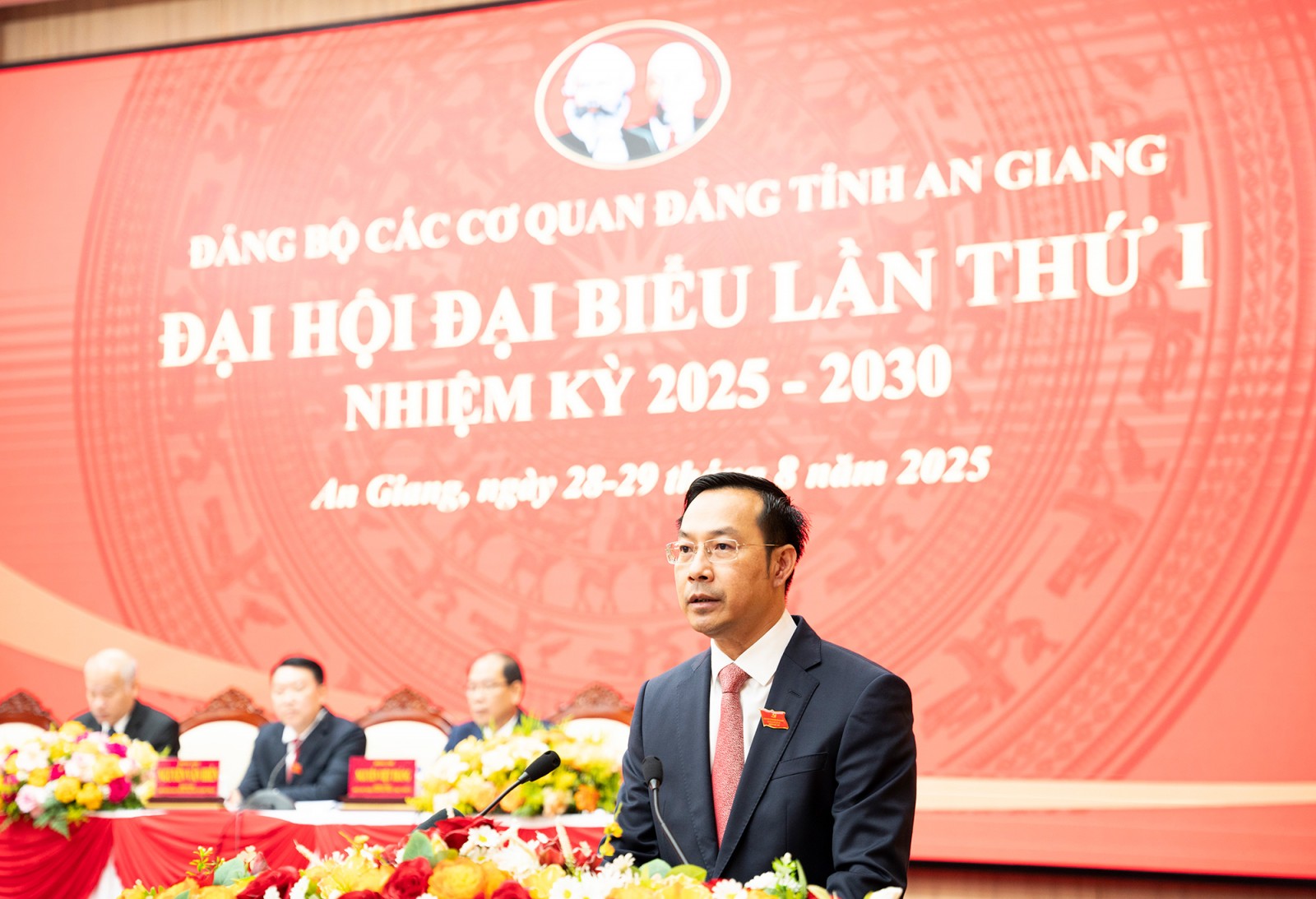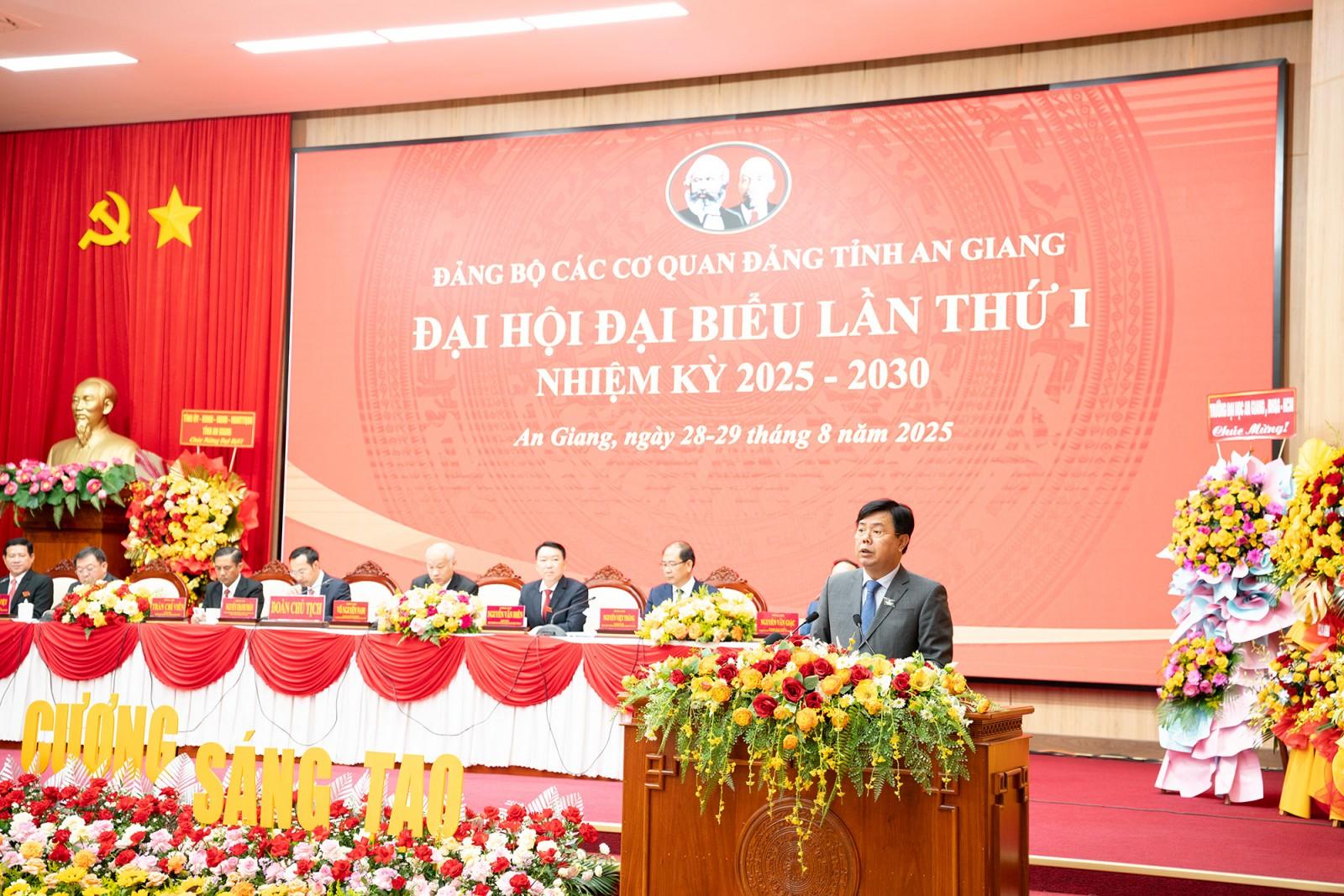 Ngày 28 và 29/8, Đảng bộ Các cơ quan Đảng tỉnh An Giang tổ chức Đại hội đại biểu lần thứ I, nhiệm kỳ 2025 - 2030, với sự tham dự của 123 đại biểu chính thức đại diện 1.848 đảng viên toàn đảng bộ. Ủy viên Ban Chấp hành Trung ương Đảng, Bí thư Tỉnh ủy An Giang Nguyễn Tiến Hải đến dự và chỉ đạo đại hội.