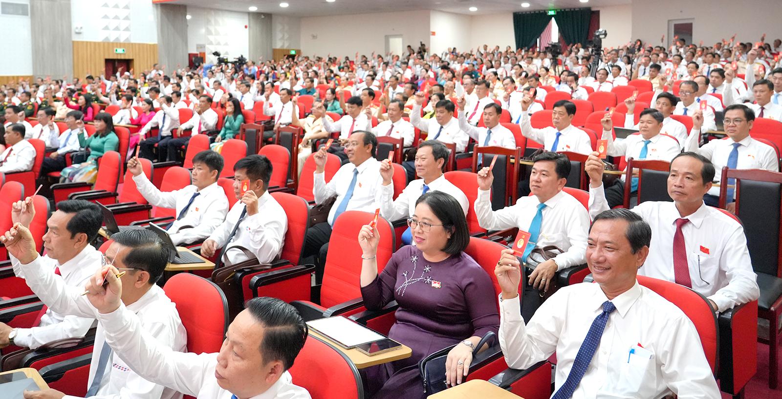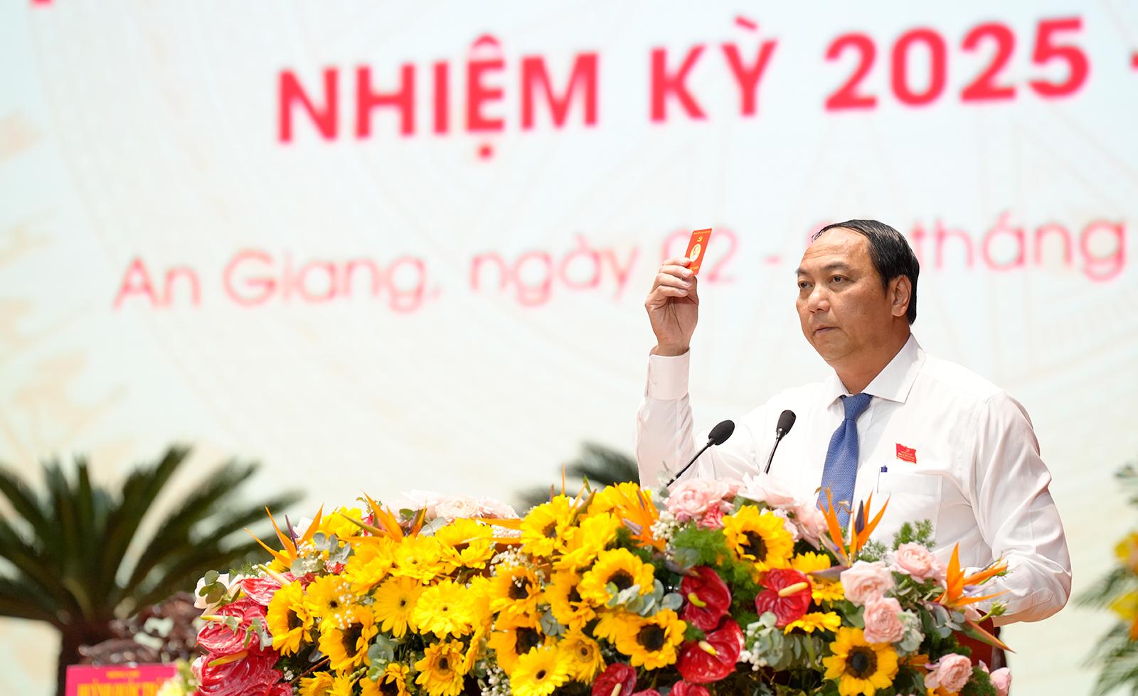 Đại biểu biểu quyết bầu Đoàn Chủ tịch Đại hội đại biểu Đảng bộ tỉnh An Giang lần thứ I, nhiệm kỳ 2025 - 2030.