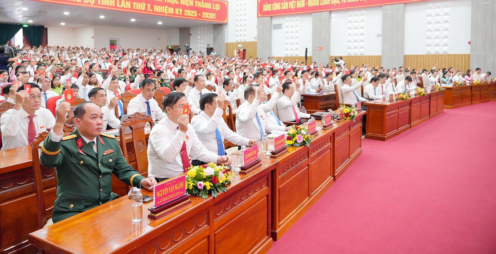 Đại biểu biểu quyết thông qua chương trình làm việc của Đại hội đại biểu Đảng bộ tỉnh An Giang lần thứ I, nhiệm kỳ 2025 - 2030 (phiên họp trù bị và phiên chính thức).