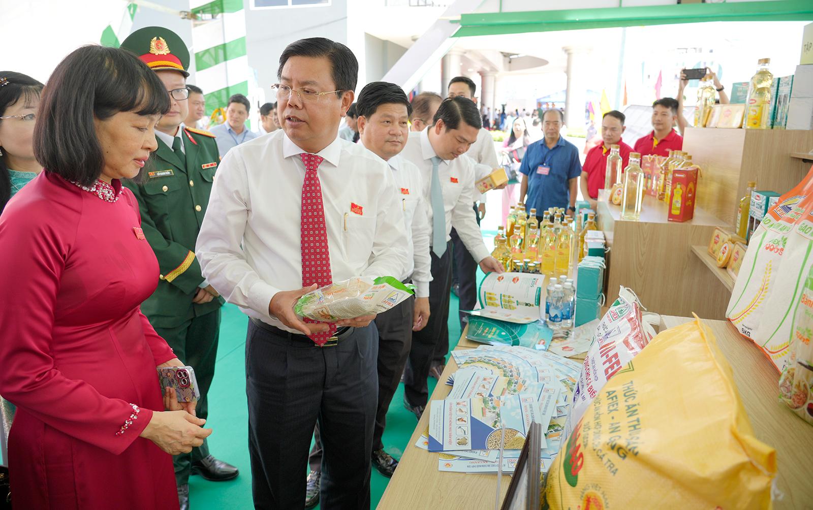 Ủy viên Ban Chấp hành Trung ương Đảng, Bí thư Tỉnh ủy An Giang Nguyễn Tiến Hải tham quan gian hàng OCOP tại Triển lãm thành tựu kinh tế - xã hội tỉnh An Giang giai đoạn 2021 - 2025, định hướng phát triển nhiệm kỳ 2025 - 2030.