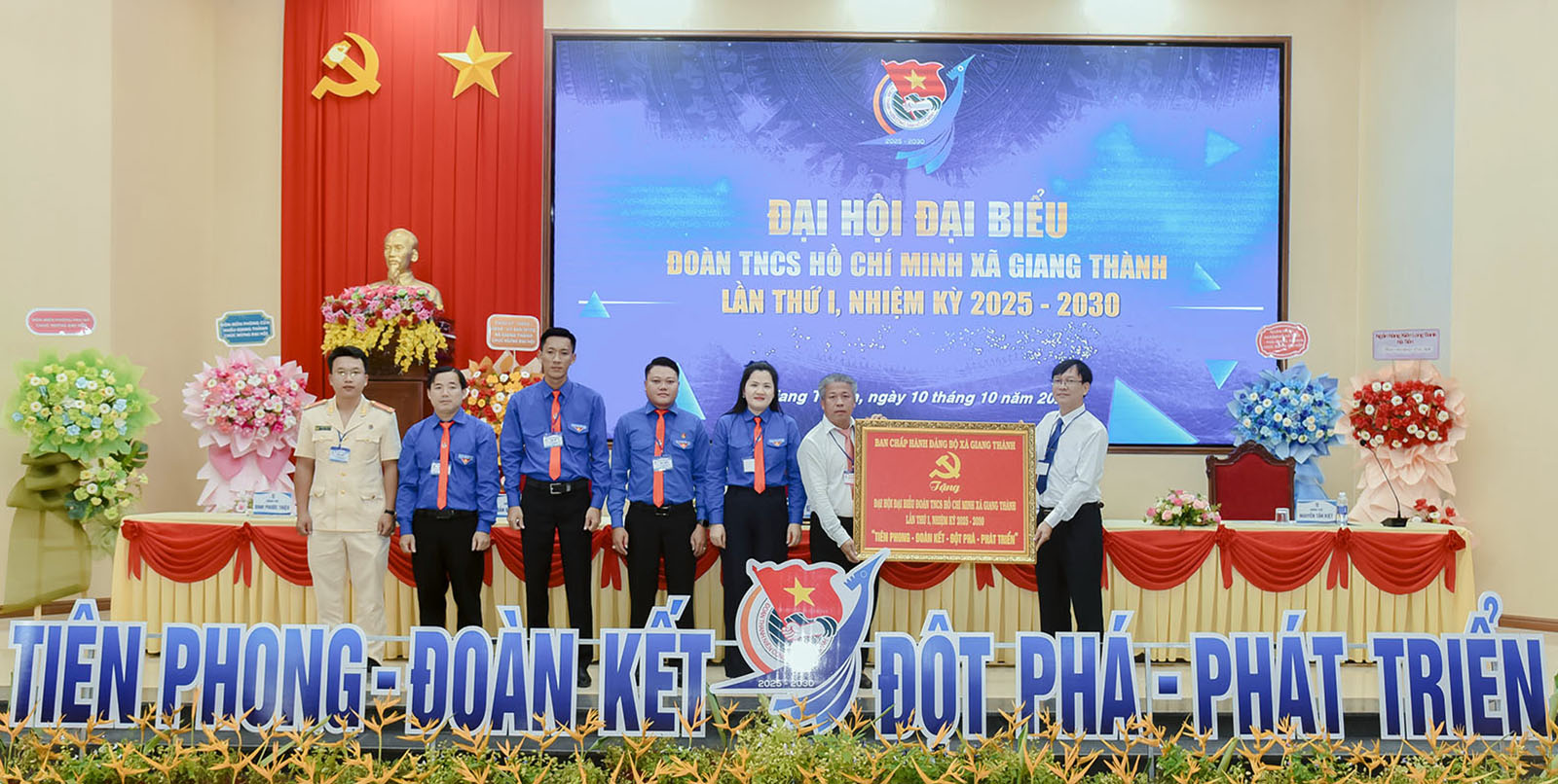Đại hội đại biểu Đoàn Thanh niên Cộng sản Hồ Chí Minh xã Giang Thành đã công bố quyết định của Ban Thường vụ Tỉnh đoàn An Giang chỉ định 29 đồng chí tham gia Ban Chấp hành nhiệm kỳ 2025 - 2030; Ban Thường vụ gồm 9 đồng chí. Chị Nguyễn Thị Duyên được chỉ định giữ chức Bí thư Đoàn Thanh niên Cộng sản Hồ Chí Minh xã Giang Thành nhiệm kỳ 2025 - 2030.