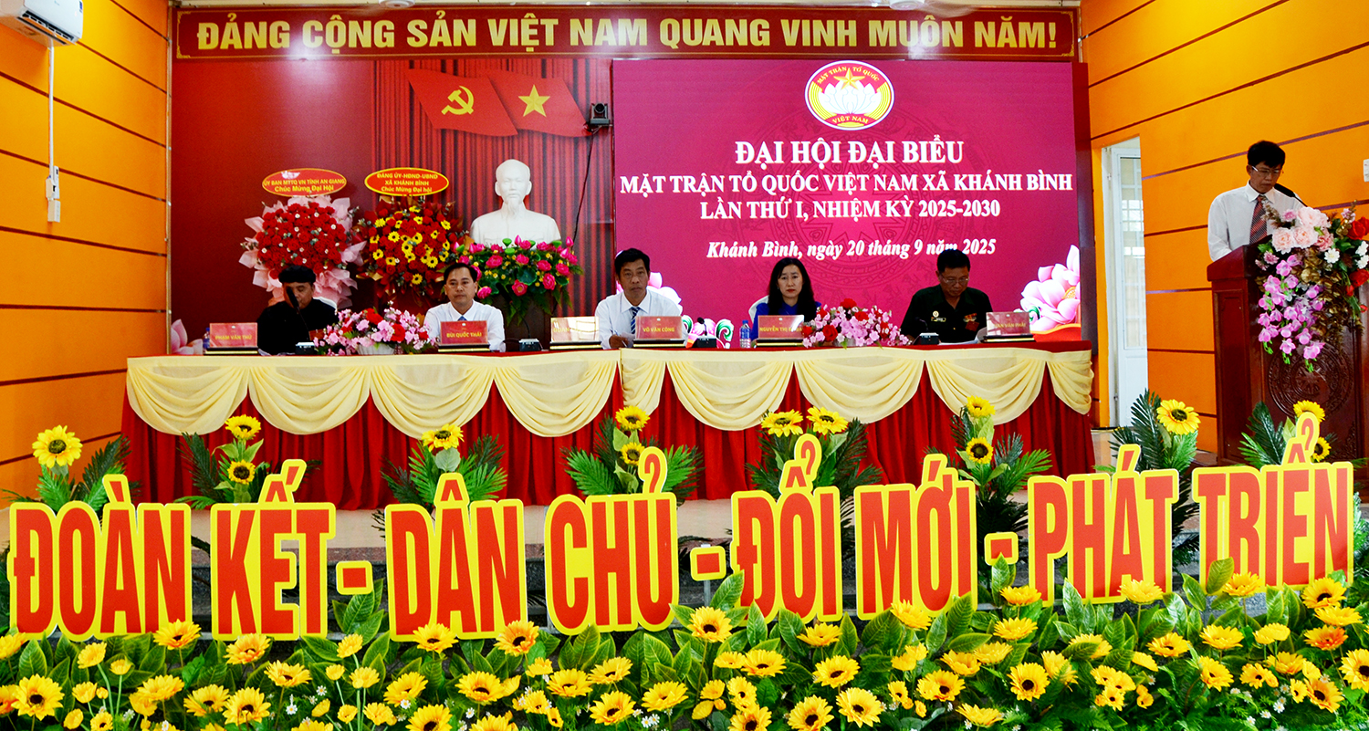 Ngày 20/9, Ủy ban Mặt trận Tổ quốc Việt Nam xã Khánh Bình tổ chức Đại hội Đại biểu Mặt trận Tổ quốc Việt Nam xã Khánh Bình lần thứ I, nhiệm kỳ 2025 – 2030. Phó Chủ tịch Ủy ban Mặt trận Tổ quốc Việt Nam tỉnh, Bí thư Tỉnh đoàn An Giang Phan Duy Bằng; Phó Bí thư Thường trực Đảng ủy xã Khánh Bình Dương Thanh Phong; Phó Bí thư Đảng ủy, Chủ tịch Ủy ban nhân dân xã Khánh Bình Tạ Văn Khương, cùng 100 đại biểu tham dự đại hội.