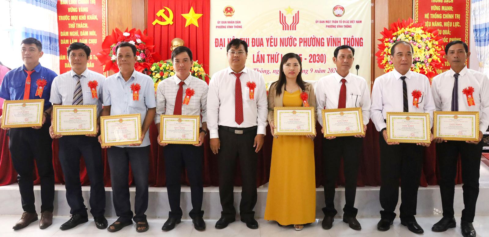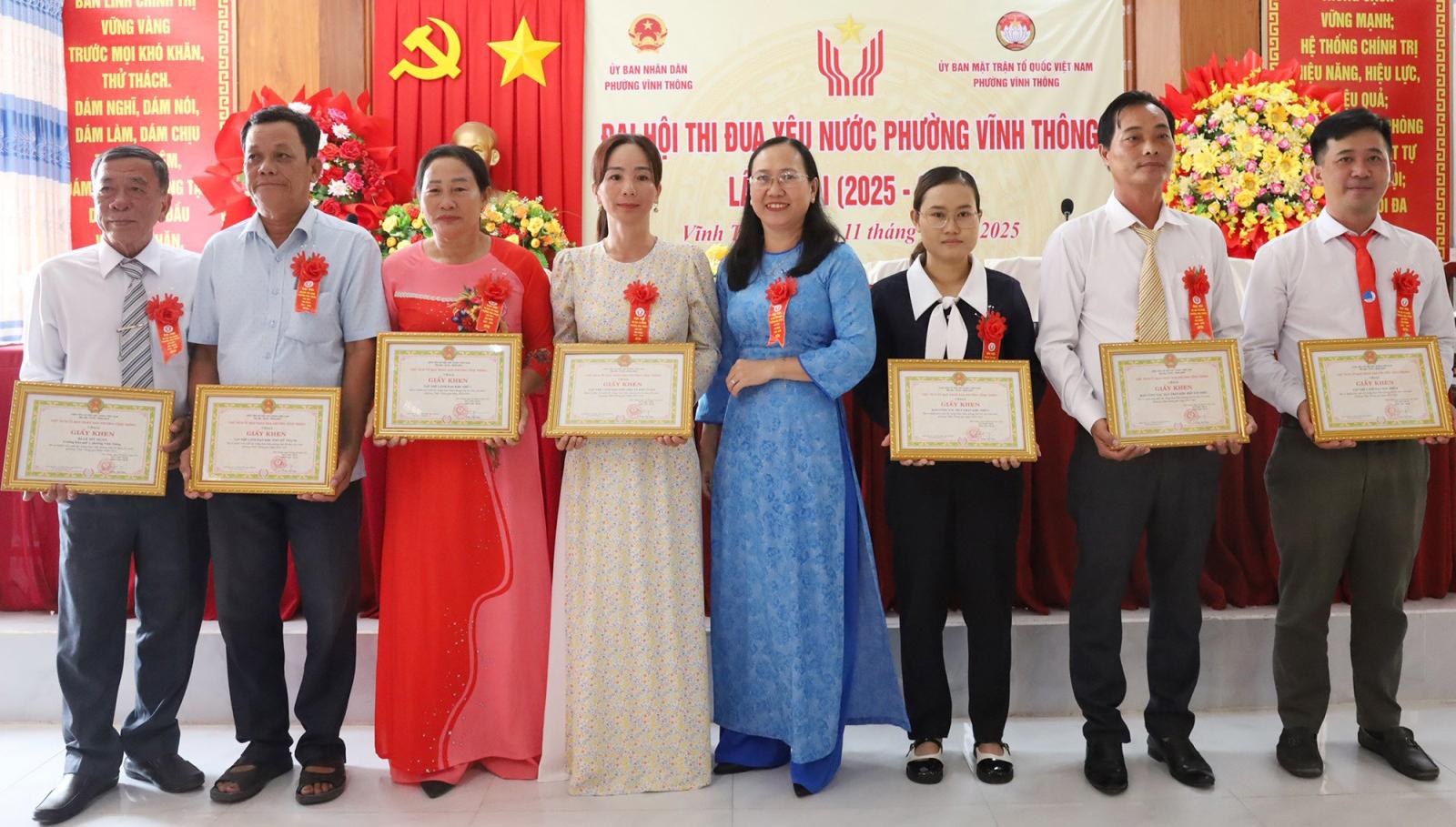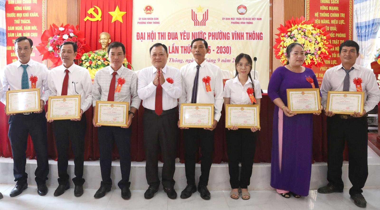 Tại đại hội, UBND phường Vĩnh Thông khen thưởng 24 tập thể và 26 cá nhân có thành tích xuất sắc trong thực hiện phong trào thi đua yêu nước phường Vĩnh Thông giai đoạn 2020 - 2025.
