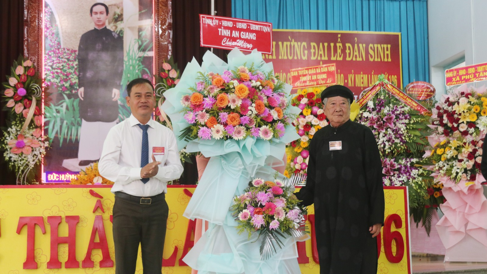 Giám đốc Sở Dân tộc và Tôn giáo tỉnh An Giang Danh Phúc tặng hoa chúc mừng đại lễ.