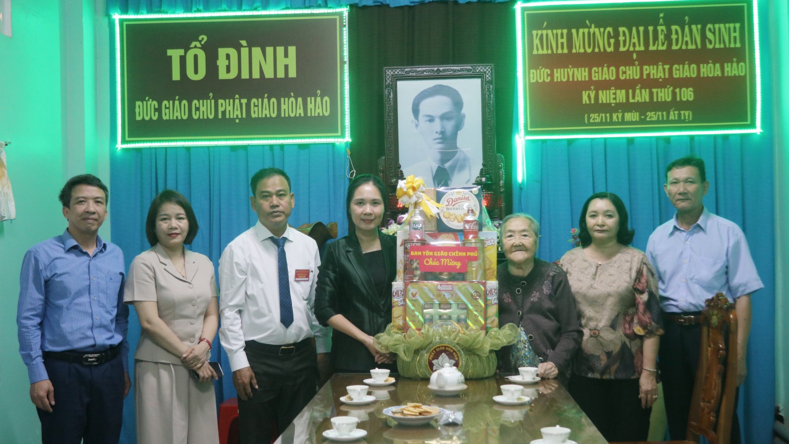Cùng ngày, đoàn công tác của Ban Tôn giáo Chính phủ đến thăm, chúc mừng và tặng quà Ban Trị sự Trung ương Giáo hội Phật giáo Hòa Hảo và Ban Phụng tự Tổ đình Đức Giáo chủ Phật giáo Hòa Hảo.