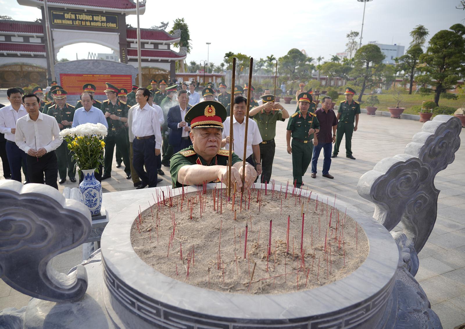 Đại tướng Nguyễn Trọng Nghĩa, Ủy viên Bộ Chính trị, Bí thư Trung ương Đảng, Ủy viên Thường vụ Quân ủy Trung ương, Chủ nhiệm Tổng cục Chính trị Quân đội nhân dân Việt Nam dâng hương tại Đền tưởng niệm Anh hùng liệt sĩ và người có công.
