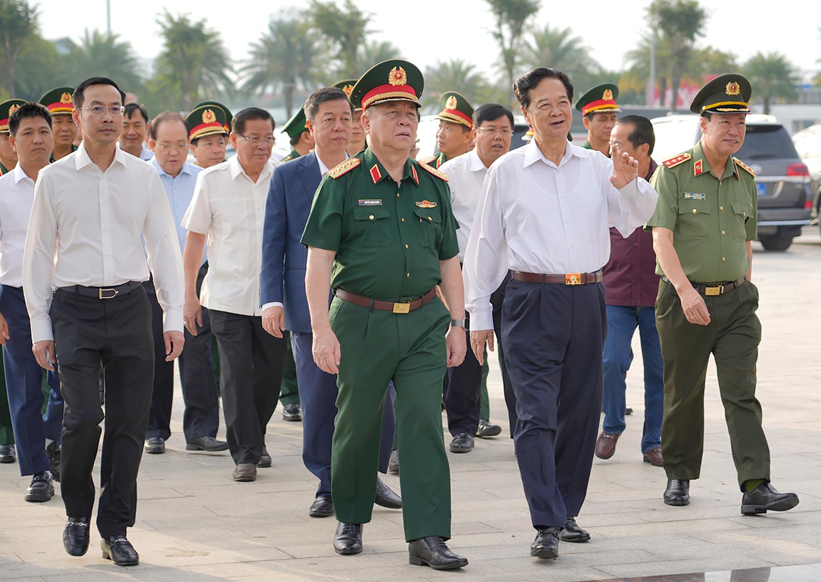 Đồng chí Nguyễn Tấn Dũng, nguyên Ủy viên Bộ Chính trị, nguyên Thủ tướng Chính phủ và Đại tướng Nguyễn Trọng Nghĩa, Ủy viên Bộ Chính trị, Bí thư Trung ương Đảng, Ủy viên Thường vụ Quân ủy Trung ương, Chủ nhiệm Tổng cục Chính trị Quân đội nhân dân Việt Nam tham quan Đền tưởng niệm Anh hùng liệt sĩ và người có công.
