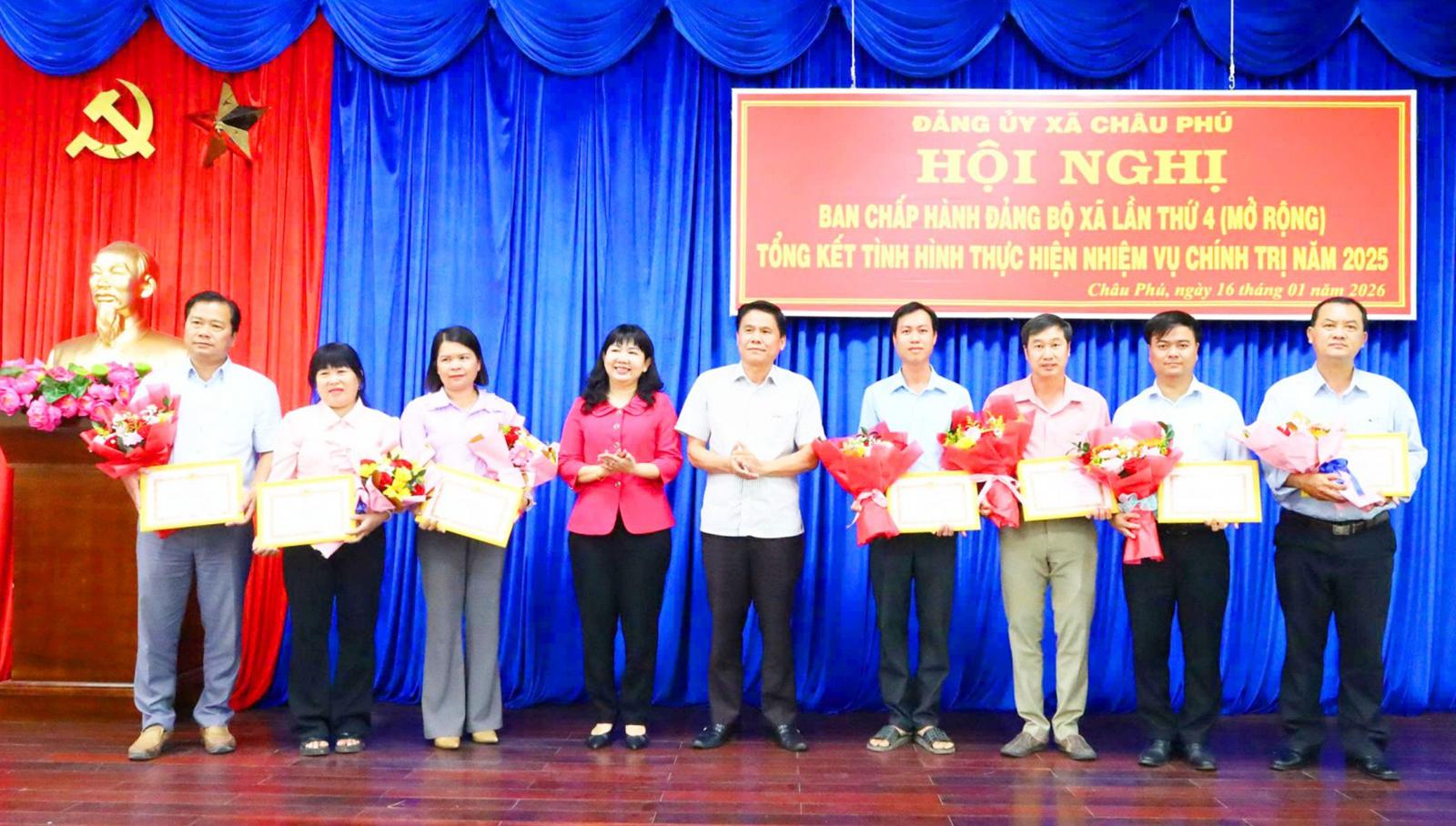Năm 2025, Đảng bộ xã Châu Phú lãnh đạo thực hiện thắng lợi toàn diện các mục tiêu đề ra, với 25/25 chỉ tiêu đạt và vượt, được Ban Thường vụ Tỉnh ủy công nhận là đơn vị hoàn thành xuất sắc nhiệm vụ. Trong đó, các lĩnh vực, như: Giải quyết việc làm, giảm nghèo đa chiều, xây dựng nông thôn mới… đạt nhiều kết quả khả quan.