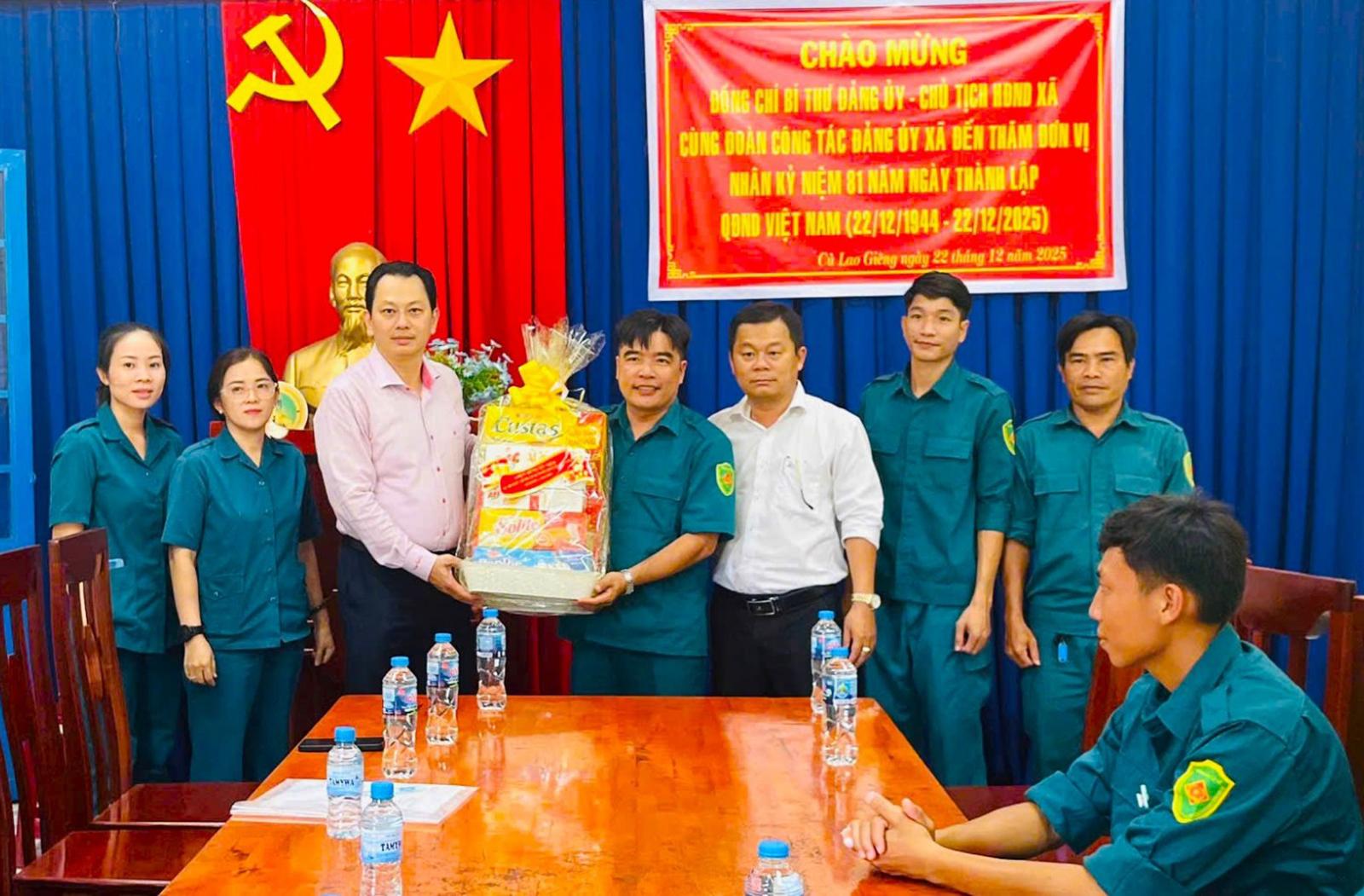 Cùng ngày, Bí thư Đảng ủy, Chủ tịch HĐND xã Cù Lao Giêng Võ Minh Nâng và Phó Bí thư Đảng ủy, Chủ tịch UBND xã Đỗ Minh Trí đã đến thăm, chúc mừng Ban Chỉ huy Quân sự xã nhân kỷ niệm 81 năm Ngày thành lập Quân đội nhân dân Việt Nam (22/12/1944 - 22/12/2025).