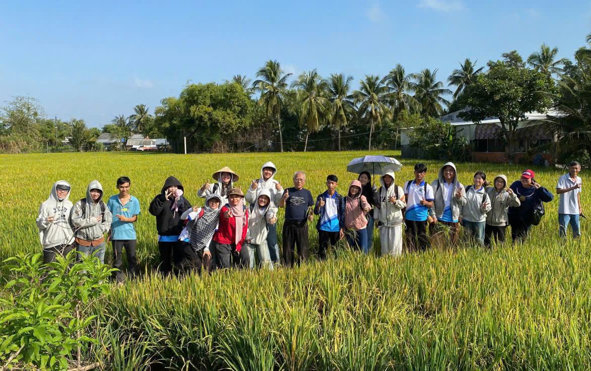 Sinh viên Khoa Nông nghiệp và Phát triển nông thôn, Trường Đại học Kiên Giang cùng giảng viên đi thực tế. Ảnh: BÍCH TUYỀN