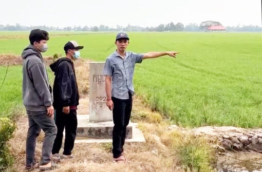 Địa điểm cột mốc 292/2, nơi đối tượng Võ Chí Linh (bên phải) thực hiện hành vi đưa người xuất cảnh trái phép.